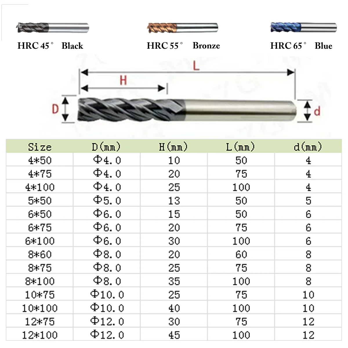 8*60 мм, 4 канавки, прямой хвостовик, вольфрам, твердосплавные концевые фрезы HRC45, ЧПУ, микро-зерна, плоская Концевая фреза, сверла, сердечник, дрель