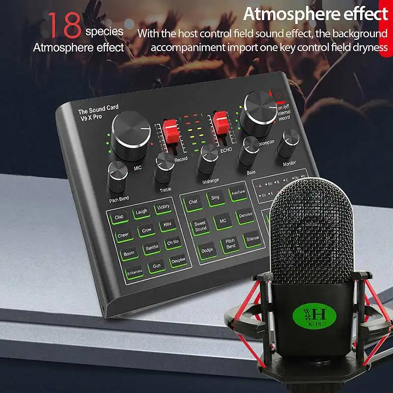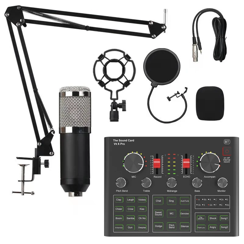 Конденсаторный микрофон BM800, звуковая карта V9X PRO, миксер, набор для записи прямых трансляций, микрофон для телефона, K-трек, компьютер для караоке