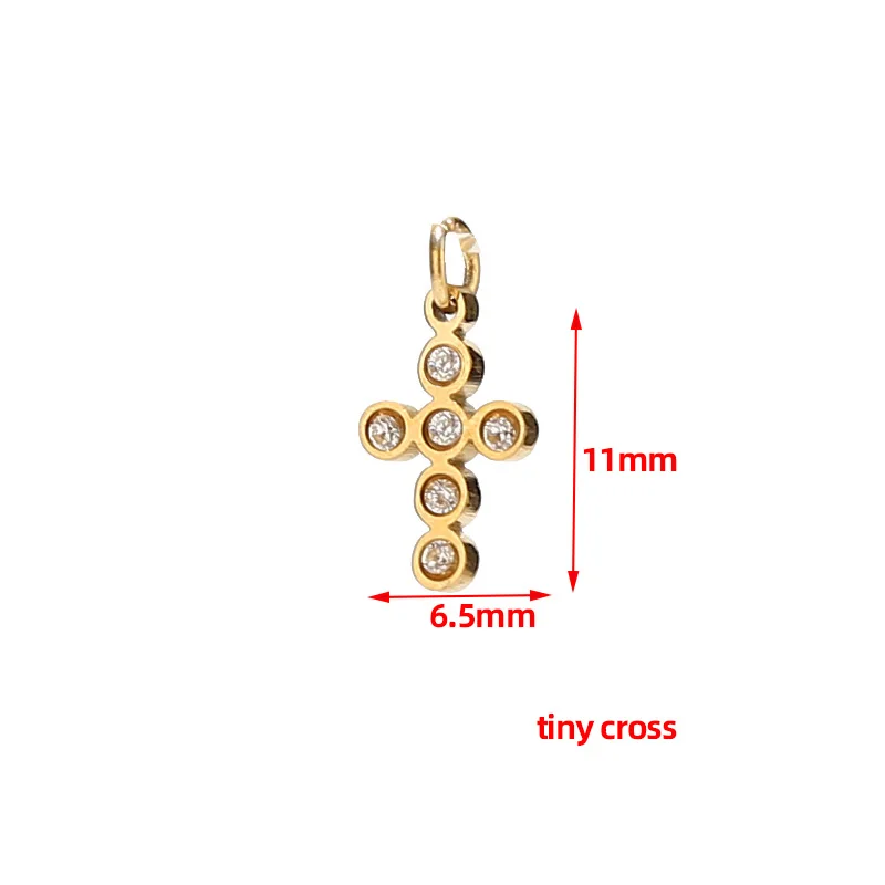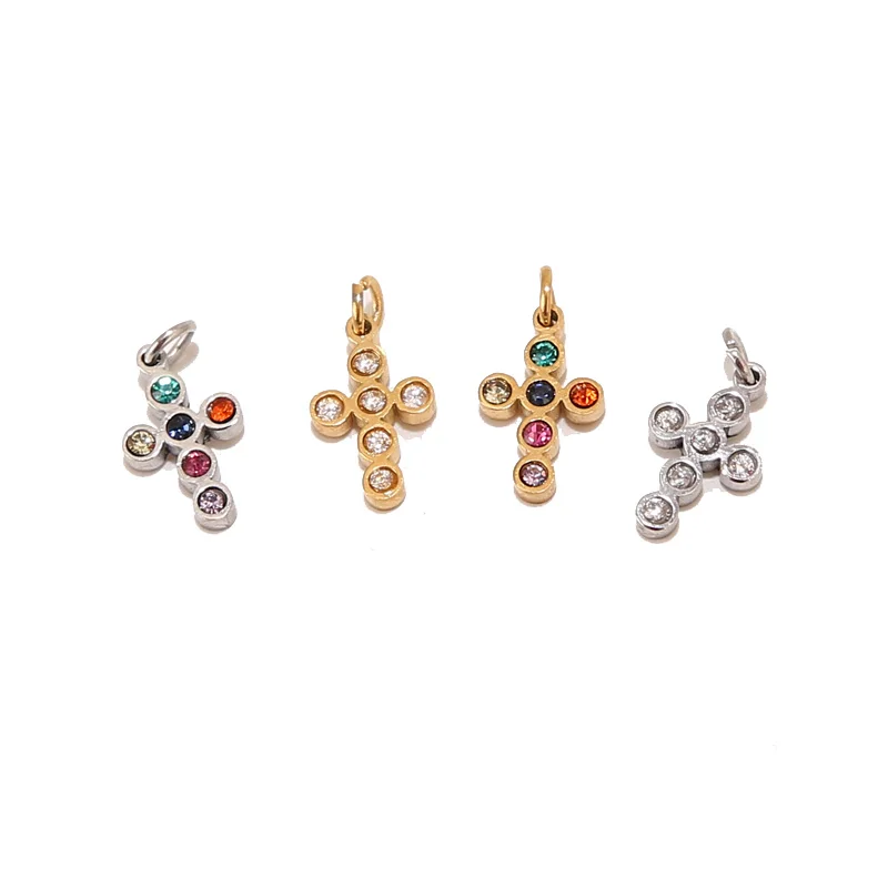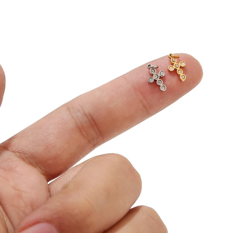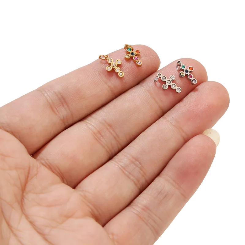 Набор миниатюрных крестиков из нержавеющей стали для изготовления браслетов и сережек, кубический цирконий, инкрустированный, 5 штук