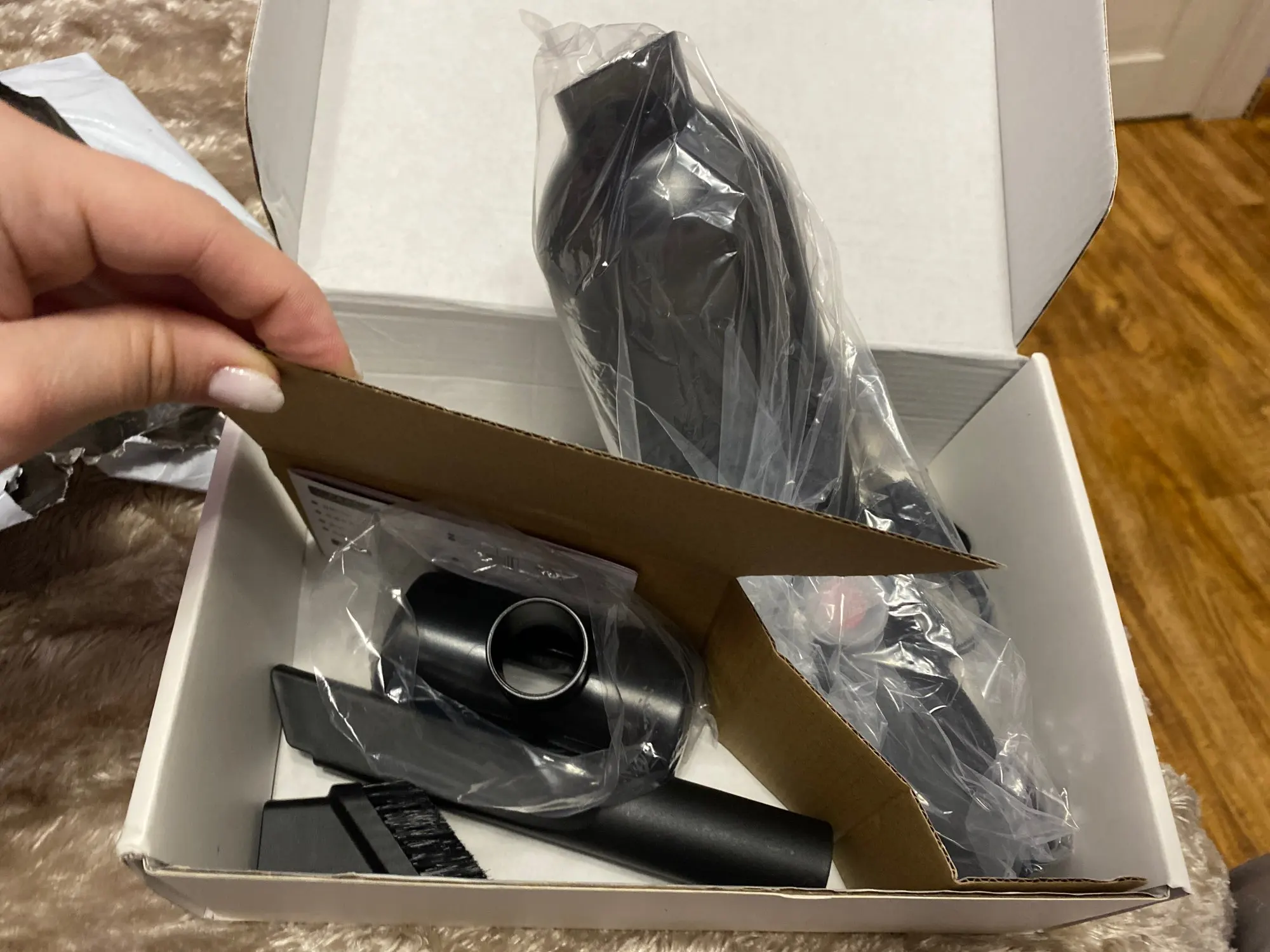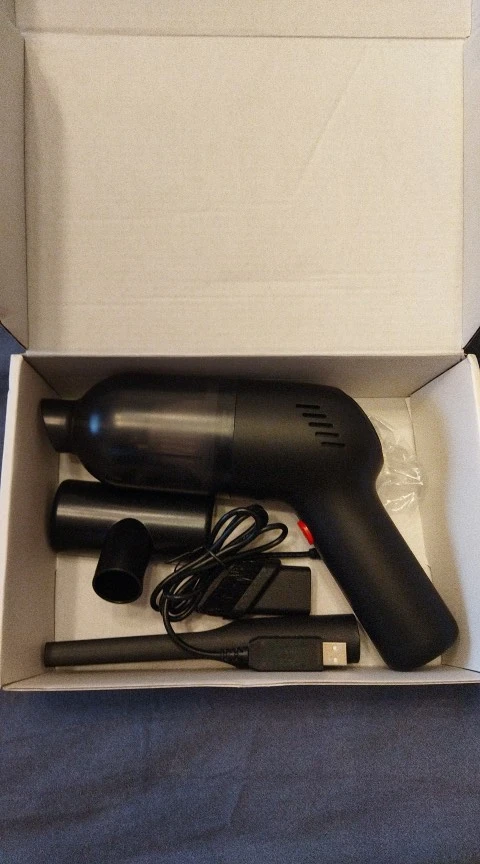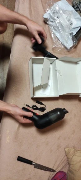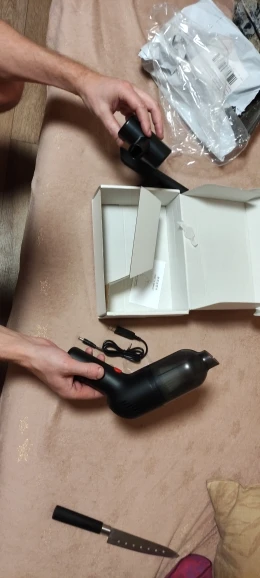 Получил изделие. На вид и внимательный осмотр очень качественно сделано. Три насадки,шнур USB,сам пылик,внутри типа HEPA filter,всё подогнано очень качественно. Коробка из картона подороже, поэтому подойдёт и на подарок. За эти деньги считаю довольно приличное изделие. Шимут как нормальный пылесос,но и тянет вроде для своих мощностей хорошо. Давно хотел пылик для автомобиля, песок достал ,ну вот приобрёл. Цвет белый , конечно слегка манерный. Но думаю друзья увидят, возможно тоже соблазнятся:) По форме похож на фен . В руке удобно чувствуется . В общем считаю вещь необходимая для автомобилиста . Возможно может пригодится и в хозяйственной домашней деятельности для шустрой точечной уборки. Привез курьер по предварительному звонку. Все очень удобно и на комфортно прошло.
