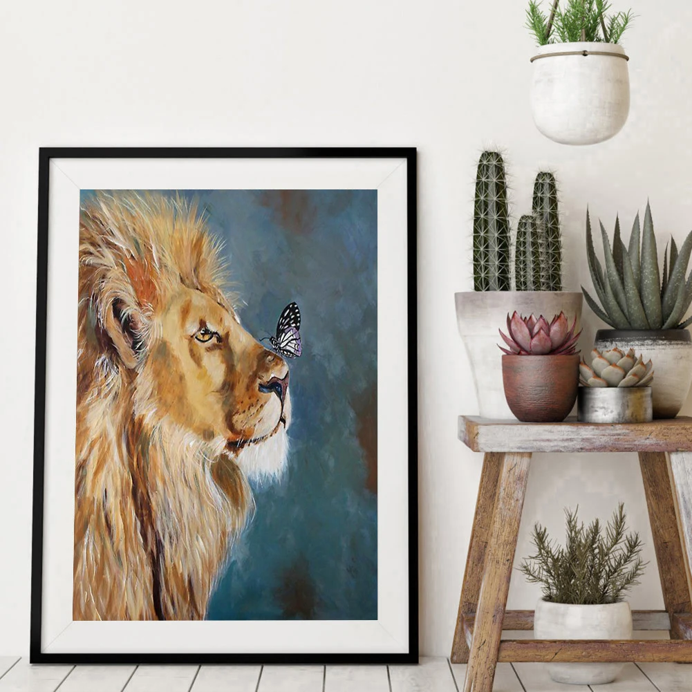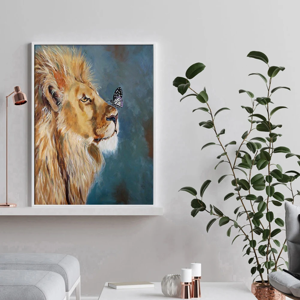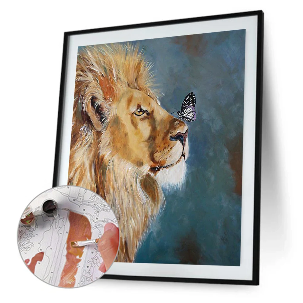 Сделай Сам живопись маслом по номерам Картина Ручная роспись Рисование акриловый холст Лев бабочка современный настенный художественный Декор