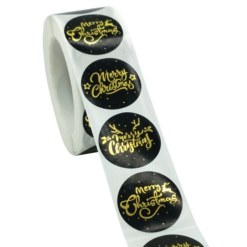 Рождественские Стикеры с золотым тиснением, Рождественская этикетка для ребенка, подарок, декор магазина, упаковочные наклейки, этикетки 50-500 шт.