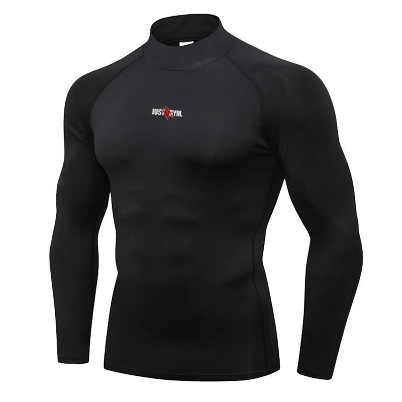 Футболка мужская компрессионная, с высоким горлом и длинным рукавом