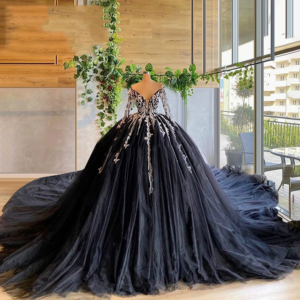 Черное вечернее длинное платье с аппликацией для знаменитостей, с открытыми плечами, торжественное платье для выпускного вечера, женское Пышное Бальное Платье, Robe De Soiree