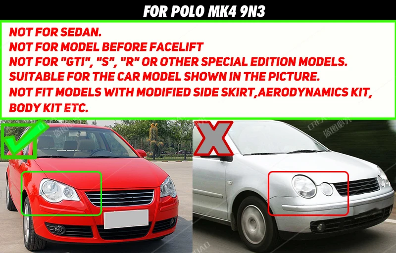Fitment: для 2005 ~ 2009 VW Polo хэтчбек. Typ 9N3, Facelifted (IV / MK4)(Не подходит для предыдущих моделей, подходит только для автомобиля на фотографиях)Не подходит для седанаНе подходит для моделей «GTI», «S», «R» или других моделей специального выпуска