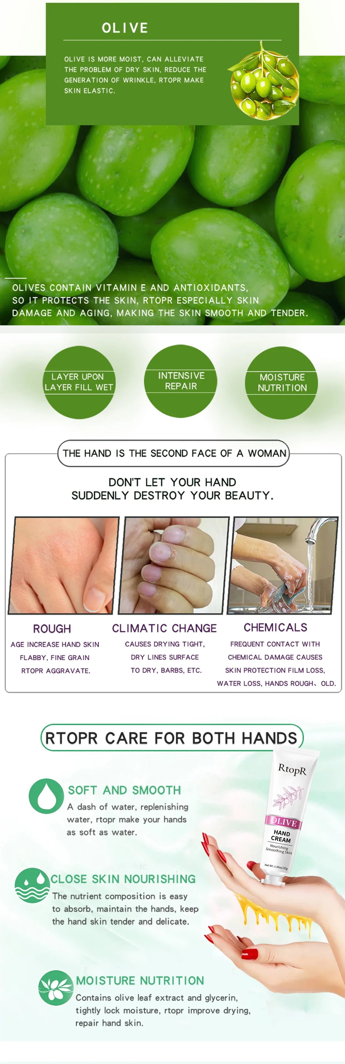 Оливковый крем для рук RTOPR, антивозрастной отбеливающий питательный увлажняющий антивозрастной крем для рук