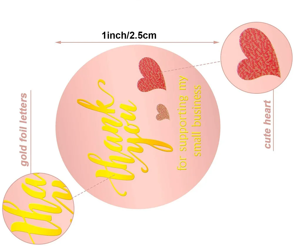 1 дюймовые круглые розовые наклейки500 этикеток в рулонеСпасибо, позолота и Сердечко с красными чернилами.Идеально подходит для свадьбы, юбилея и дня рождения. Благодарим Вас и благодарим. Отлично подходит для бизнеса, чтобы использовать сумки, ткани, коробки и многое другое.Крафт-этикетка с постоянным клеем, который прилипает к большинству поверхностейНаклейка придаст милый штрих особому подарку, который Вы сделали сами. Идеально подходит для выпечки, герметичных пакетов или конвертов в особых случаях.