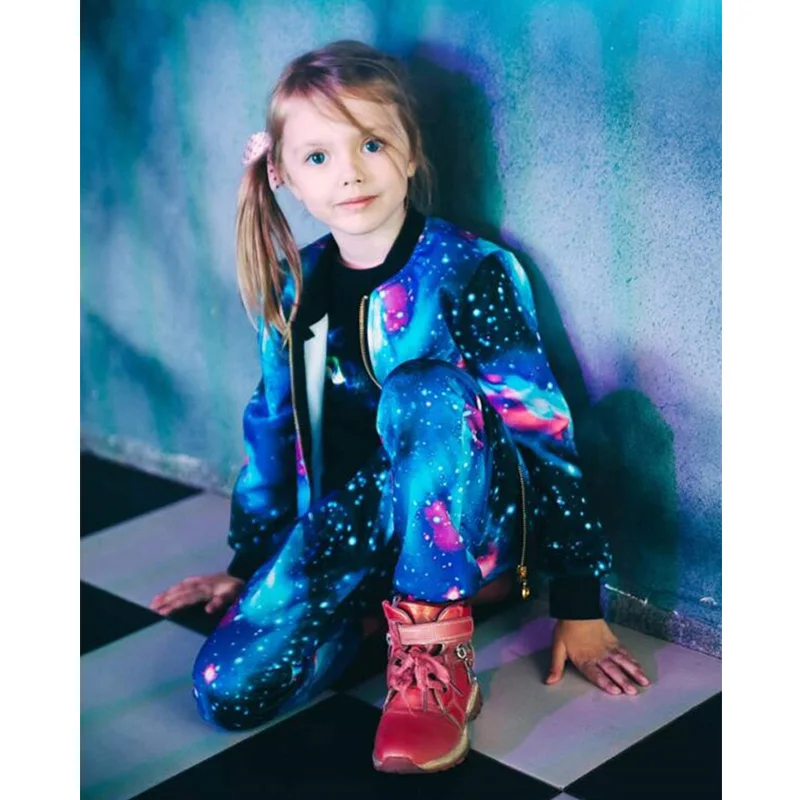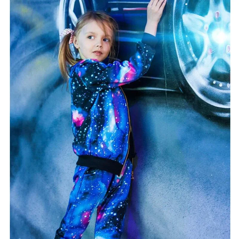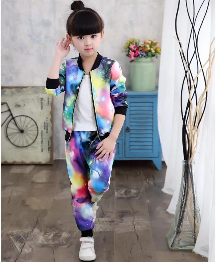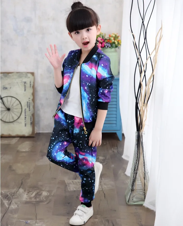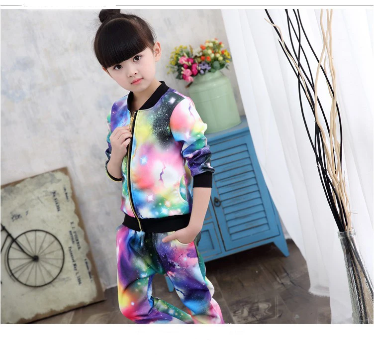 Комплект одежды для девочек, детский модный спортивный костюм из куртки на молнии и брюк, детский спортивный костюм на весну и осень, одежда для малышей