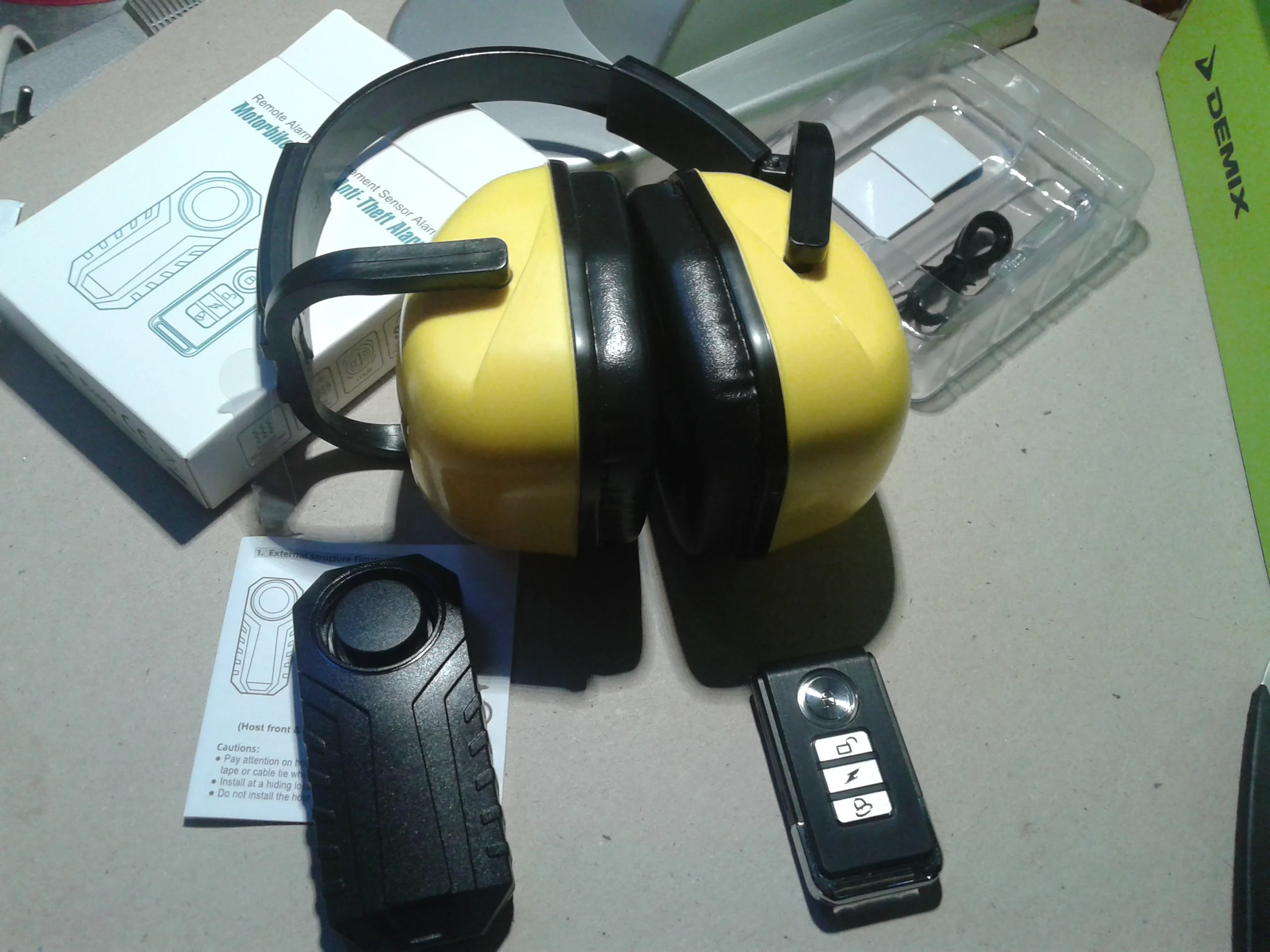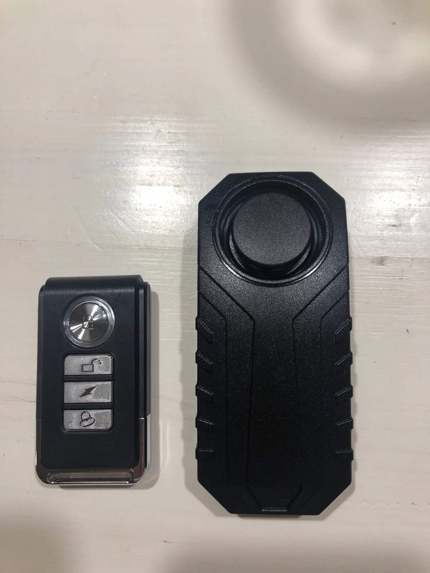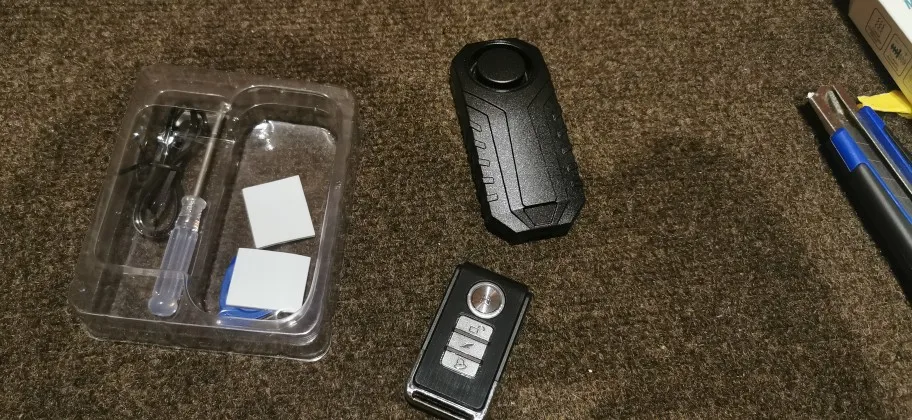 Громкая и чувствительная сигнализация, но если чем закрыть, то естественно звук глушится, ставить лучше на открытые части. На ютубе есть обзоры. Уже установлены батарейки, в сигналку 3 ААА, в пульт 12В. И в описании не указано какая батарейка в пульте, есть ещё вариант с другим пультом, так там 3,2В.