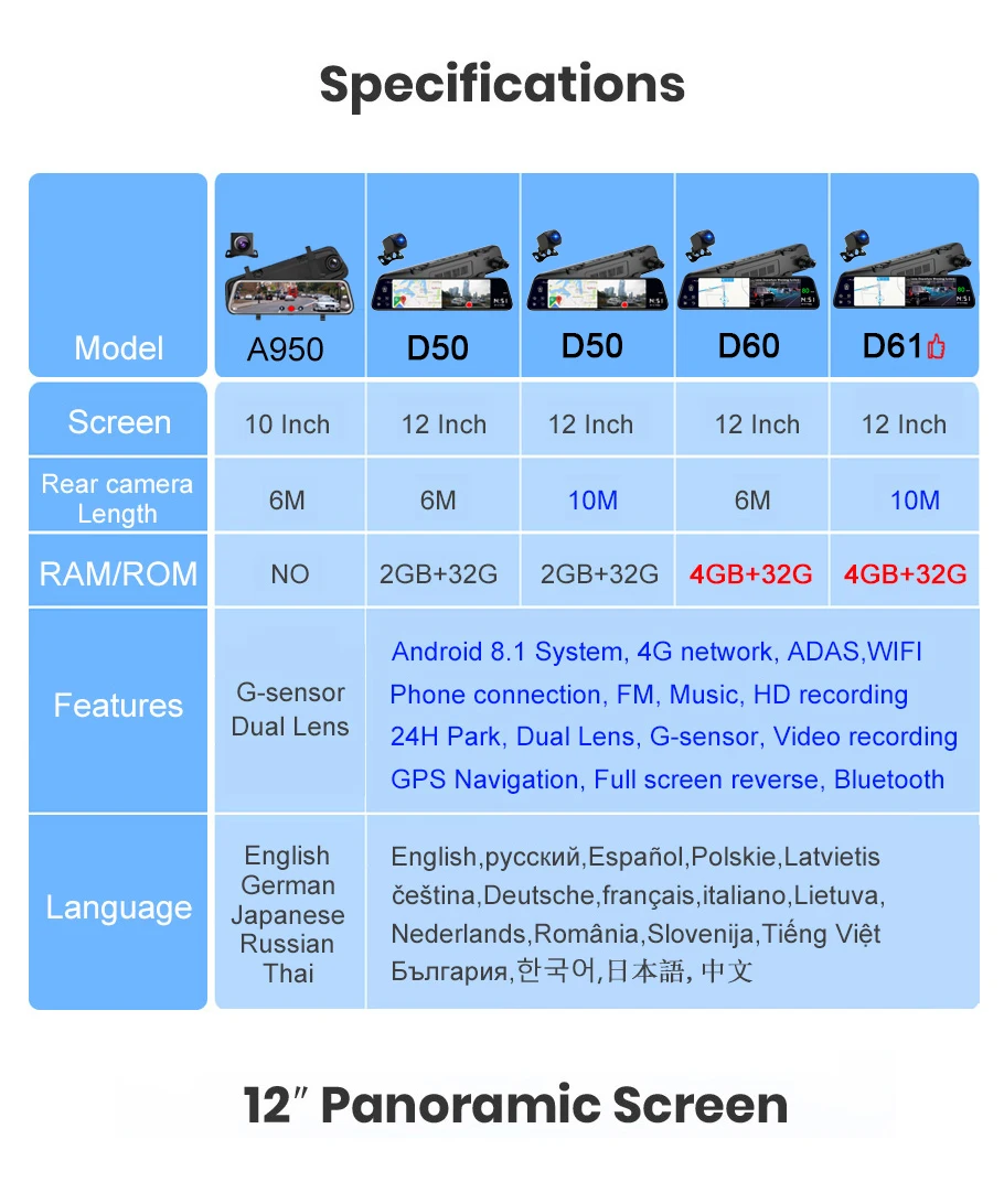 Зеркальный видеорегистратор с 12-дюймовым полноэкранным сенсорным экраном обеспечивает Кристальное изображение без задержек. Очень четкий и плавный показ изображения, как струйный поток на отличном WDR и автоматическая регулировка яркости потокового зеркала. Невероятный пользовательский опыт