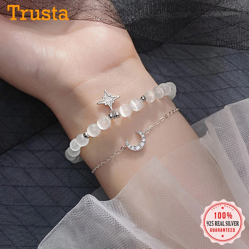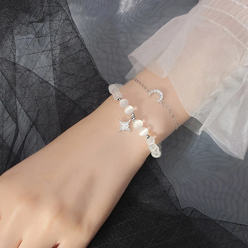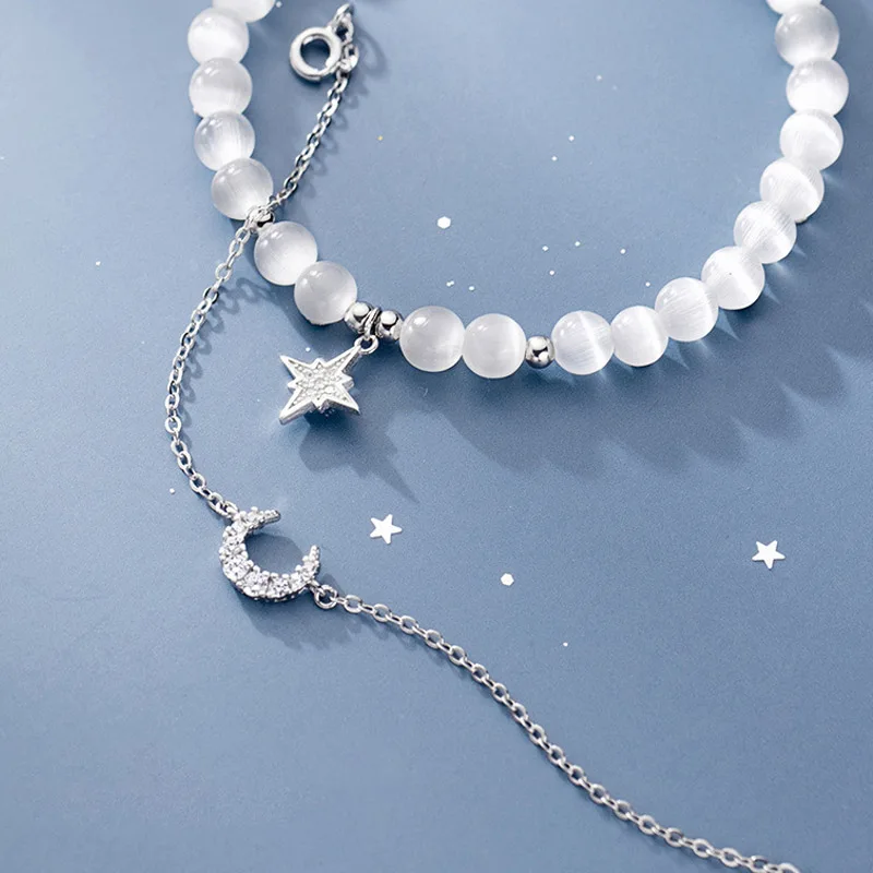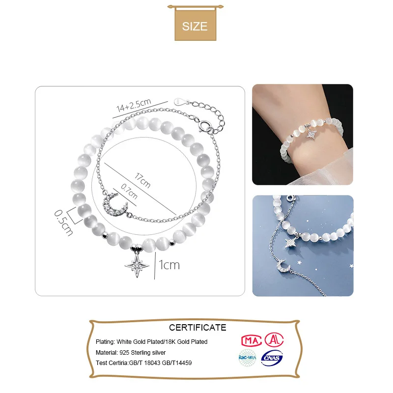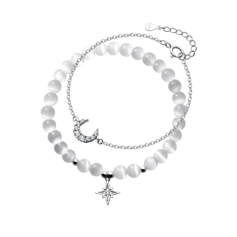 Браслет женский из серебра 925 пробы с искусственными опалами и луной, DB345