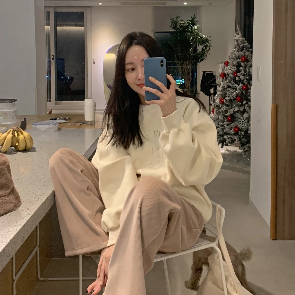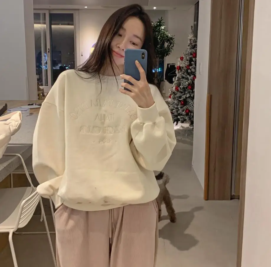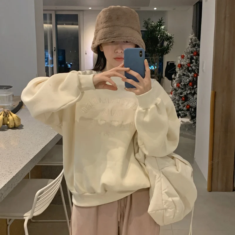 Корейские толстовки с вышитыми буквами, свитшоты с круглым вырезом, повседневные винтажные пуловеры, уличная одежда с длинным рукавом, верхняя одежда в стиле бойфренда 2021 Z129