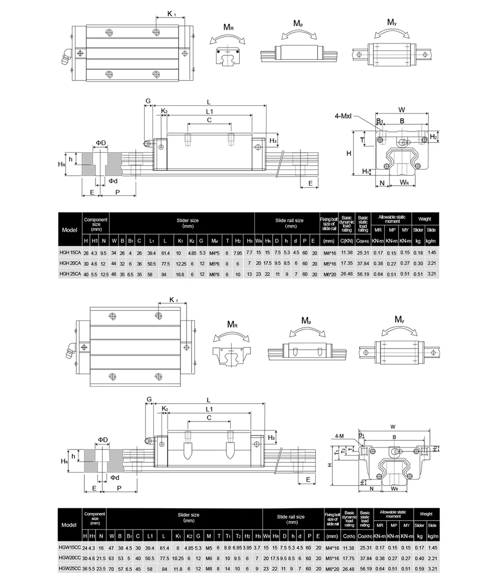 4 шт квадратных блоков (HGH15CA/HGH20CA)