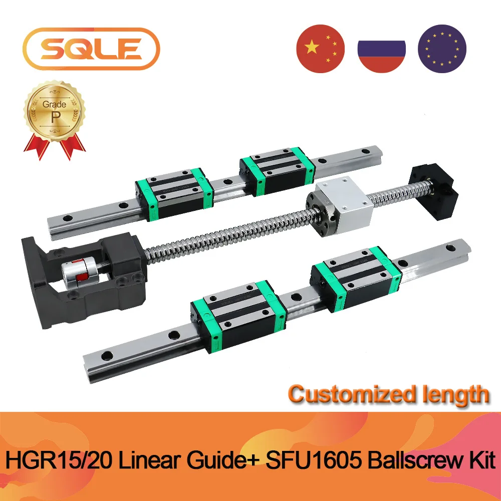 Комплект направляющих для ЧПУ HGR15 HGR20 + HGH15CA, направляющие + шариковый винт SFU1605 с опорными подшипниками + муфта для ЧПУ, склад в ЕС