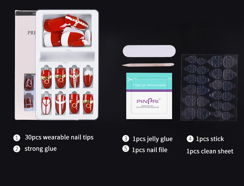 includefalse nails+wooden sticker+sticker+cleanser paper+file