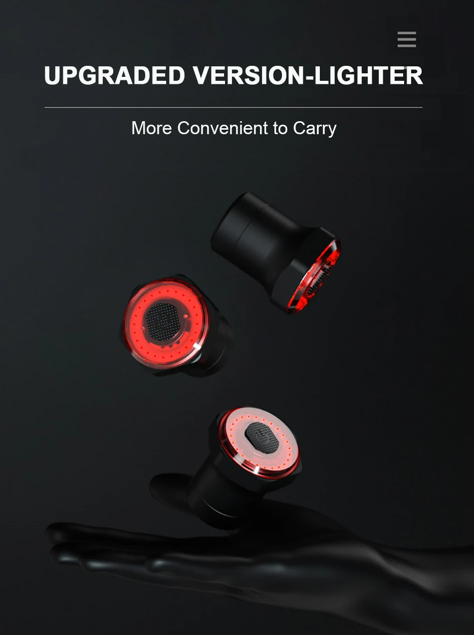 Умный велосипед задний светильник Авто стартСтоп тормозной сенсор вспышки светильник IPX6 Водонепроницаемый для езды на велосипеде, MTB Хвост светильник, Аксессуары для велосипеда