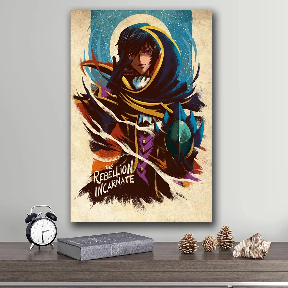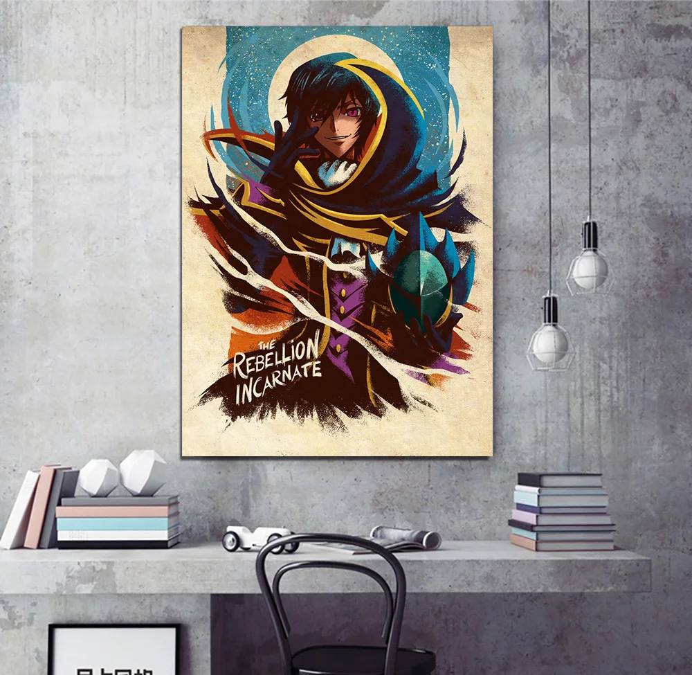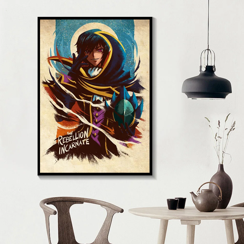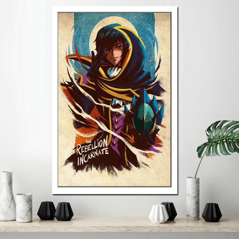 Плакаты кода гиасса, японские Мультяшные наклейки на стену, белые мелованные бумажные принты, высокое разрешение, для гостиной, спальни, домашнего искусства, бренд