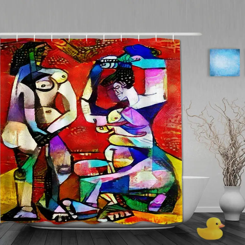 Занавеска для душа из полиэстера с 12 пластиковыми крючками, декоративная занавеска для ванны, альтернативные репродукции известных картин