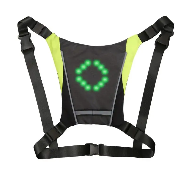Он имеет 3 светодиодных сигнала: левый, правый, стоп, от поворотников до аварийных сигналов и напоминание водителям о сохранении расстояния. Если вы прекращаете использовать светодиодный сигнальный жилет, пожалуйста, нажмите кнопку «Power», чтобы выключить.