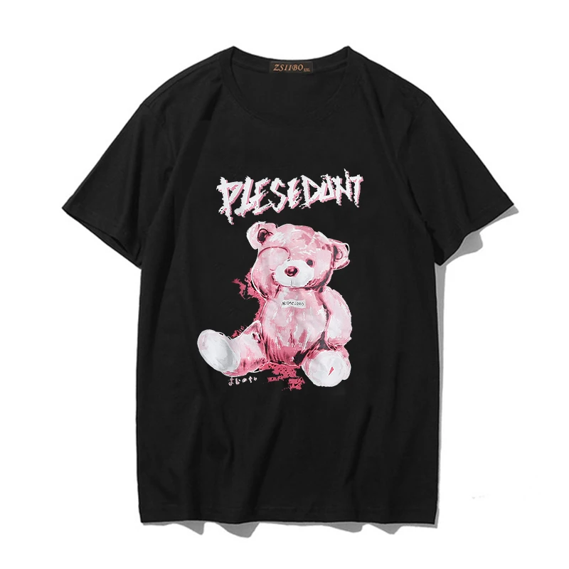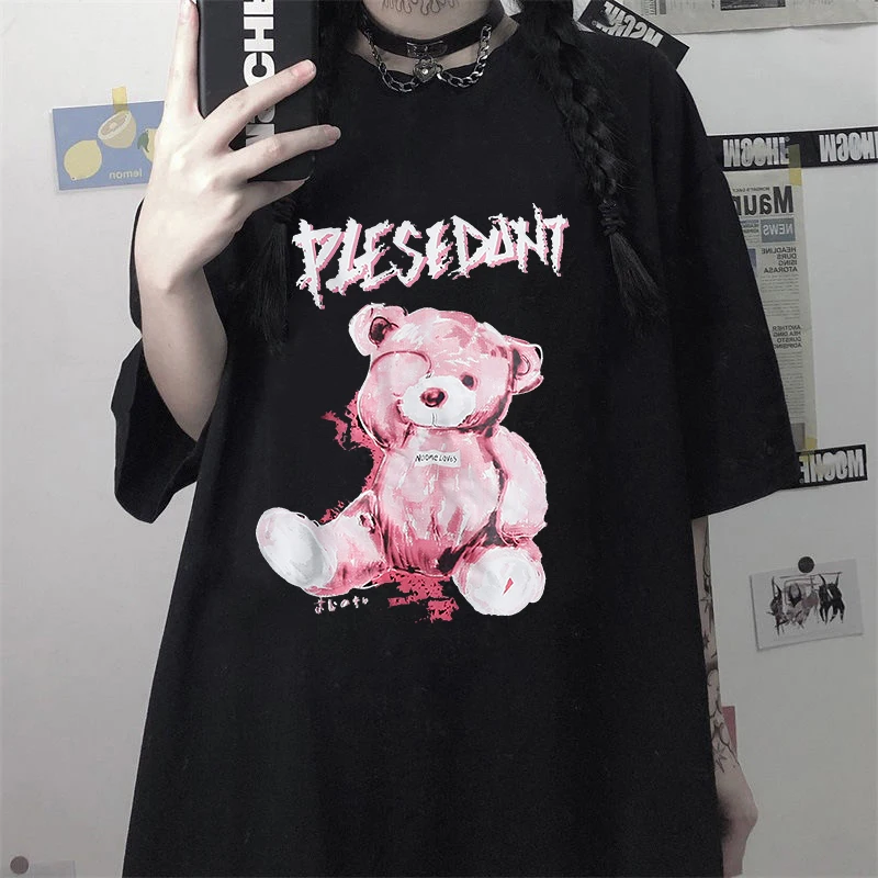 Свободный Топ в стиле Харадзюку, винтажный Готический топ с коротким рукавом и надписью медведя, одежда с забавным принтом в стиле аниме, 2 размера плюс