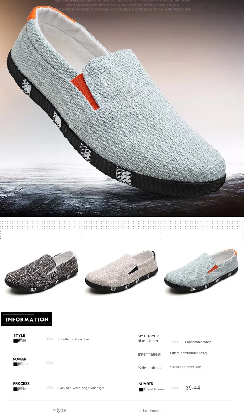Мужские льняные туфли, повседневные туфли, плоская подошва, большие...