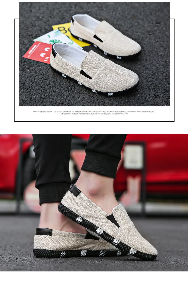 Дышащие мужские льняные холщовые туфли, летние мужские повседневные...