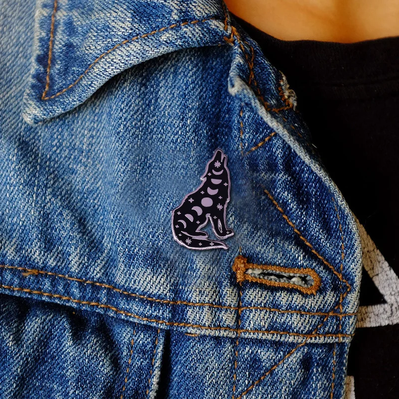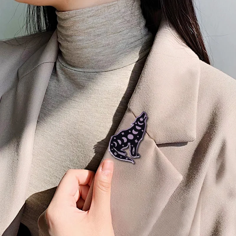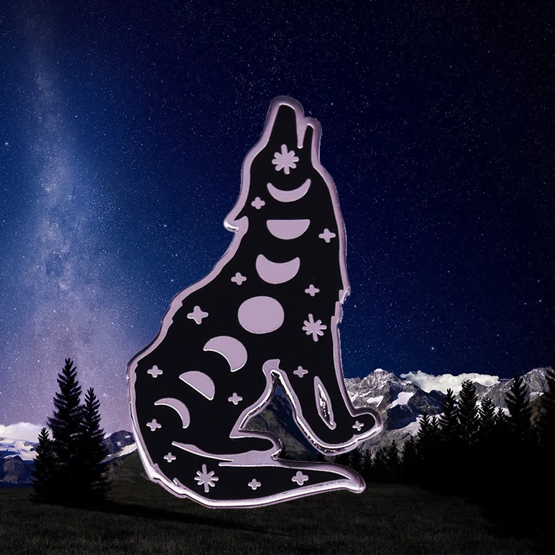 Эмалированная булавка воющего волка, дикое животное, луна, фаза, значок, природа, ночь, панк, готика, искусство, астрономический Подарок, Идея