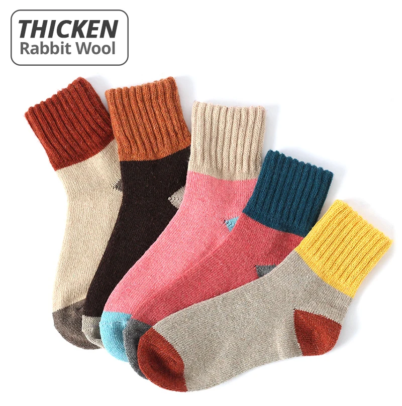 Xiao Mi 5 пар Женская обувь на осень и зиму, носки высокого качества в винтажном стиле; В мозаичном стиле; Из кроликовой шерсти носки плотные теплые хлопковые носки с рисунком
