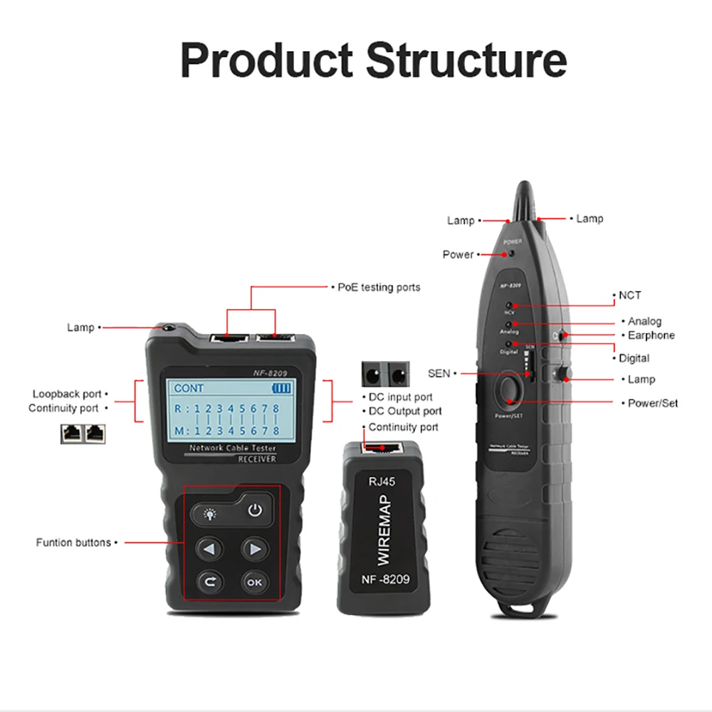 Номер моделиNF-8209 LCD Network Cable Tester Wire Tracker PoE Checker