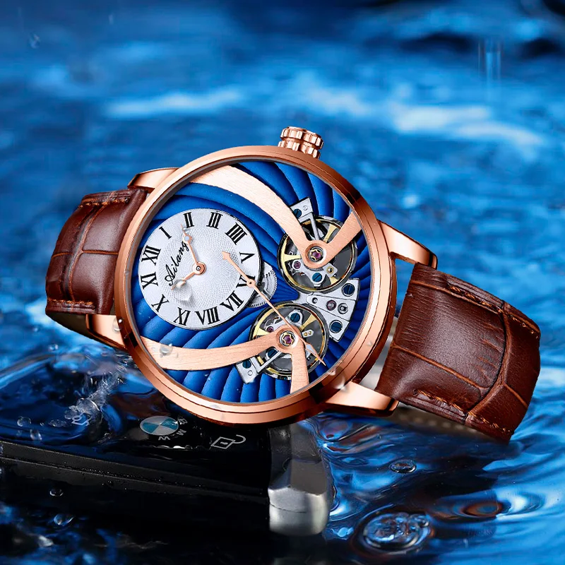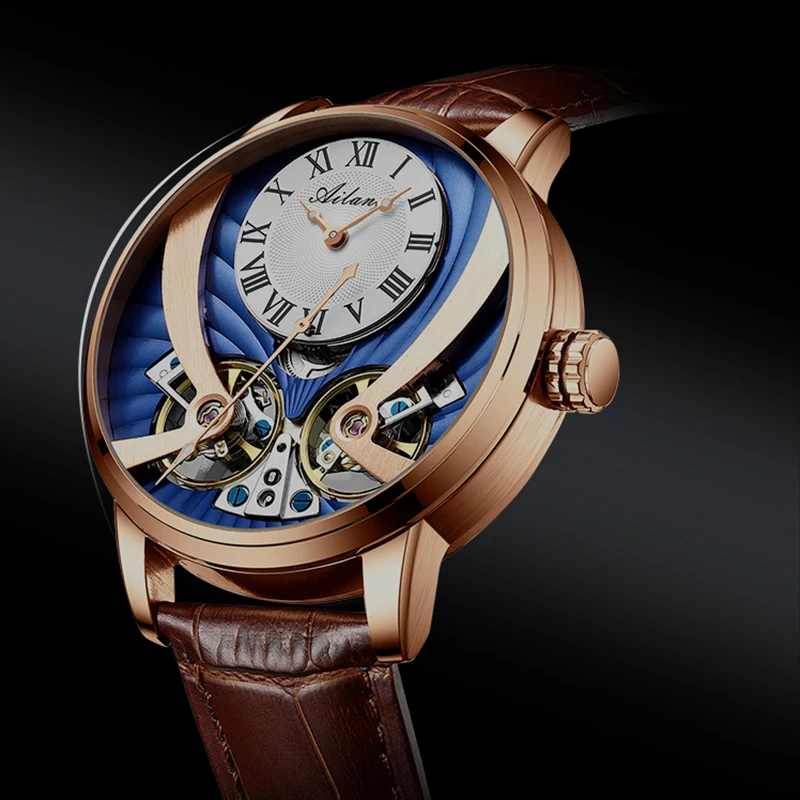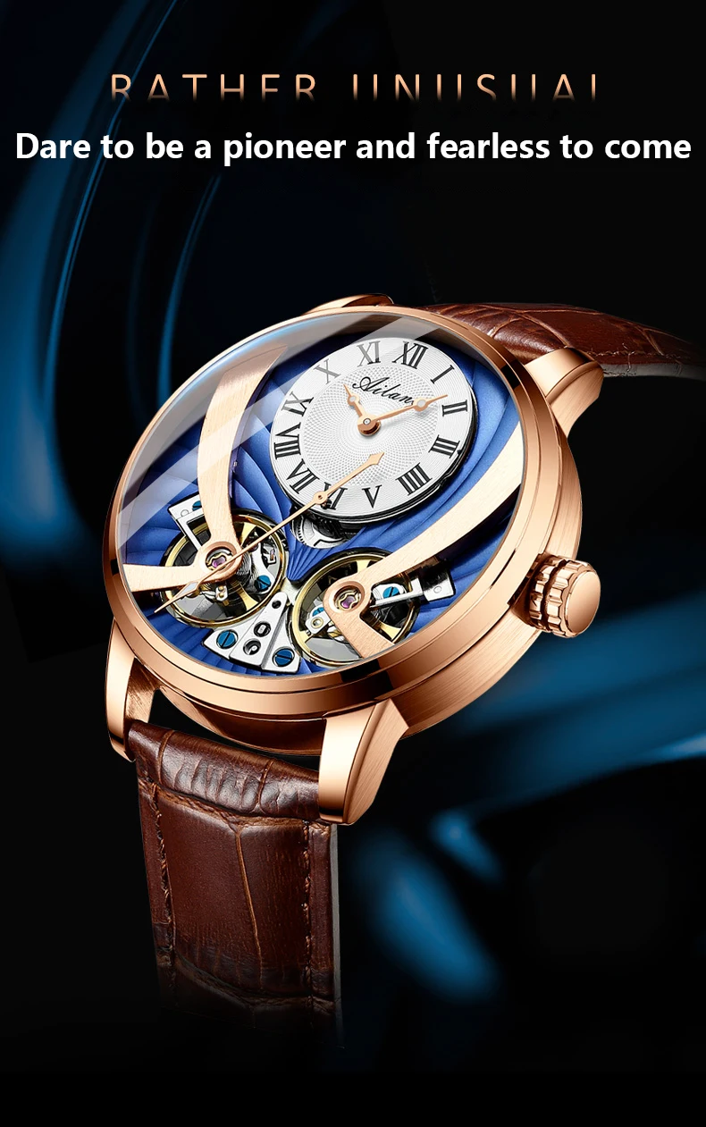 Часы мужские механические с двойным маятником и турбийоном, водонепроницаемые, AIALNG, автоматические деловые часы