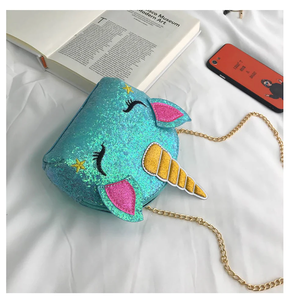 Детская сумка-мессенджер с единорогом, Подарочная детская Наплечная Сумочка с мультяшным животным, кошелек, круглая сумка на молнии через плечо, милая форма