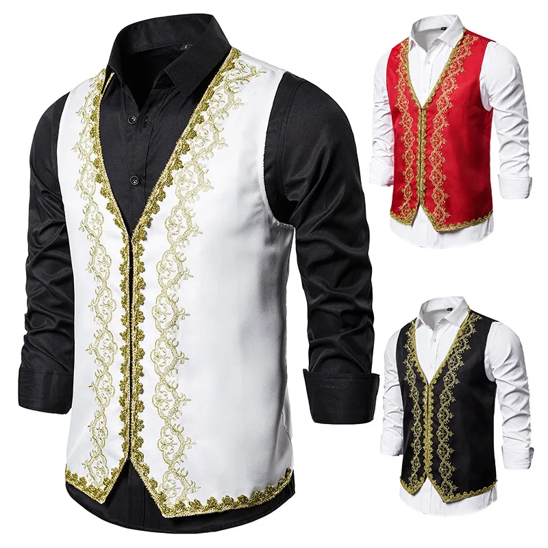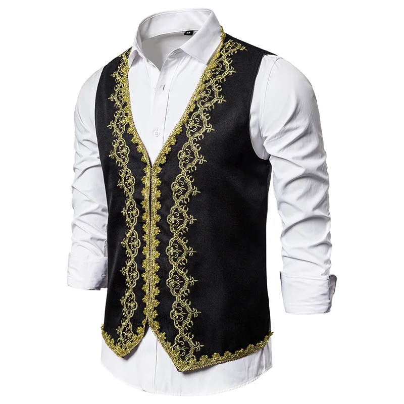 Стильный жилет в стиле барокко с золотой вышивкой, мужской облегающ...