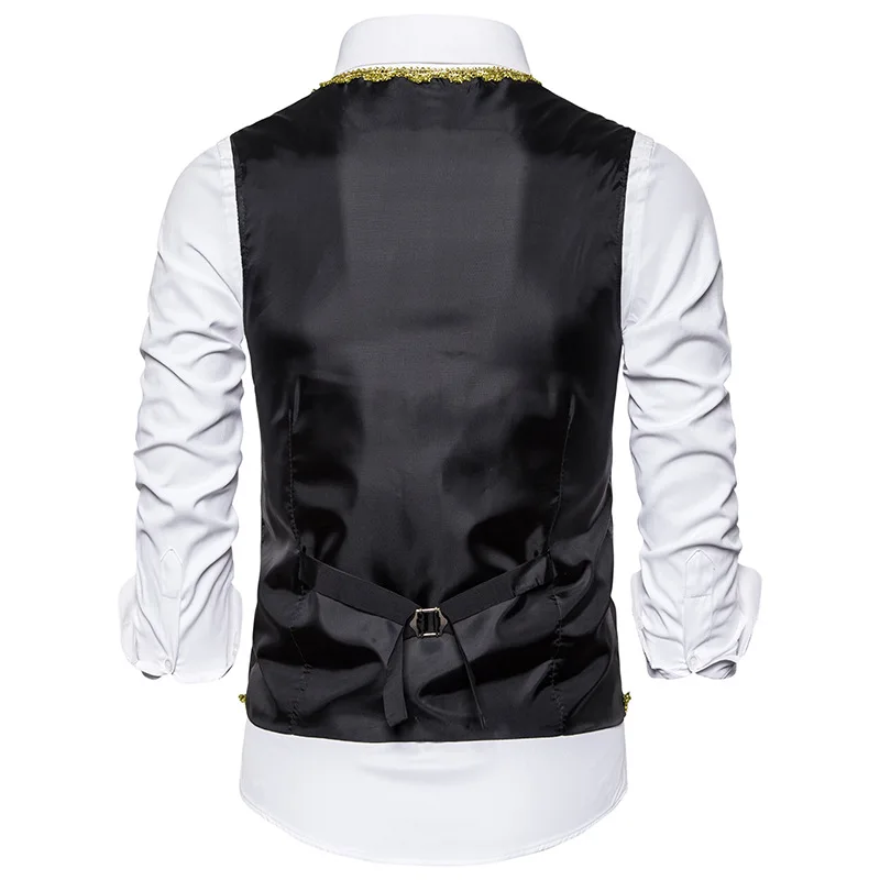 Мужское платье в европейском стиле с золотистой вставкой, платье для студии, черно-белый жилет для выступлений на сцене, Mj34, мужские жилеты с принтом