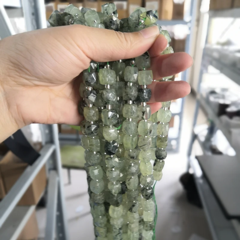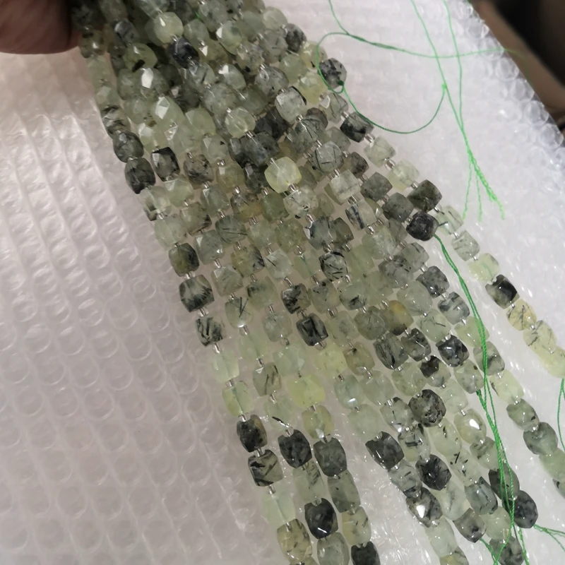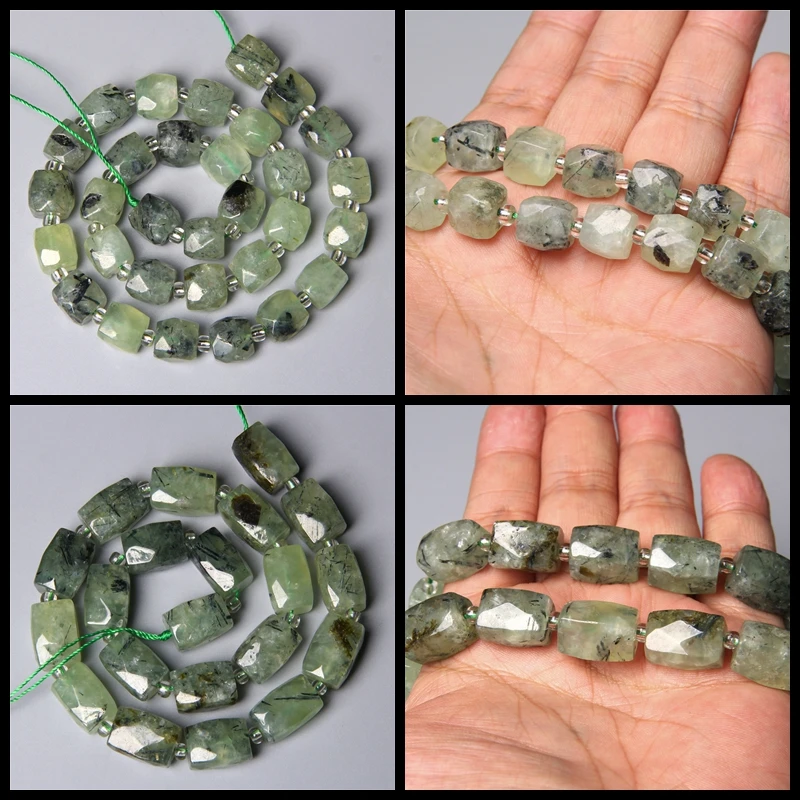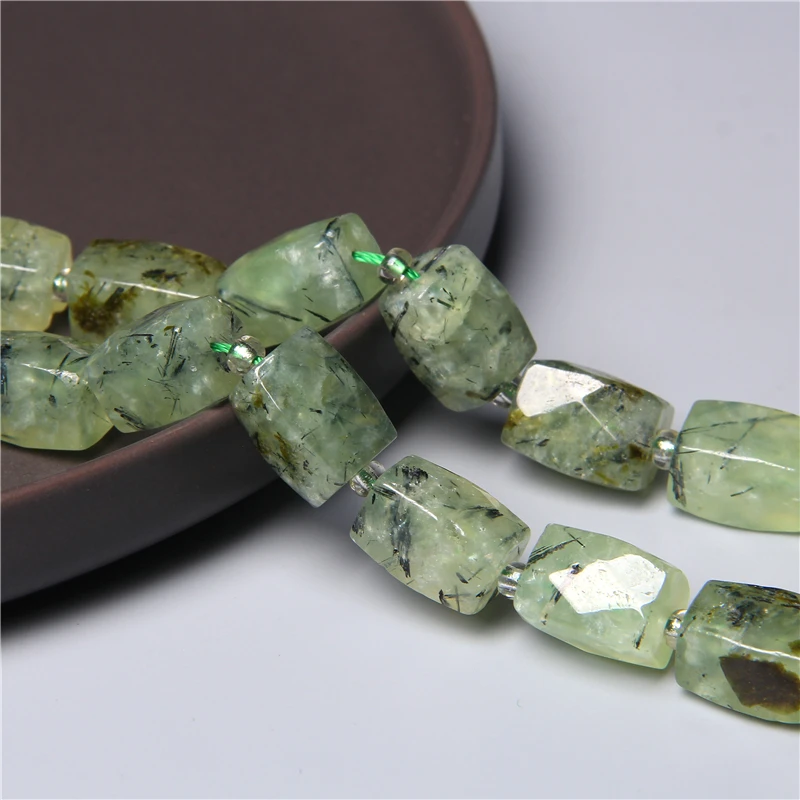 Натуральные необработанные натуральные зеленые кварцевые бусины, граненые бусины, трубчатые бусины с отверстием, для самостоятельного изготовления ювелирных изделий браслет