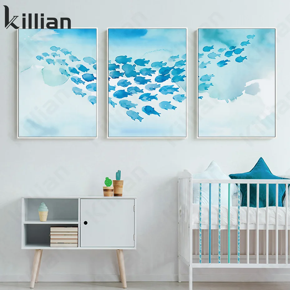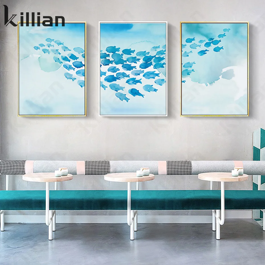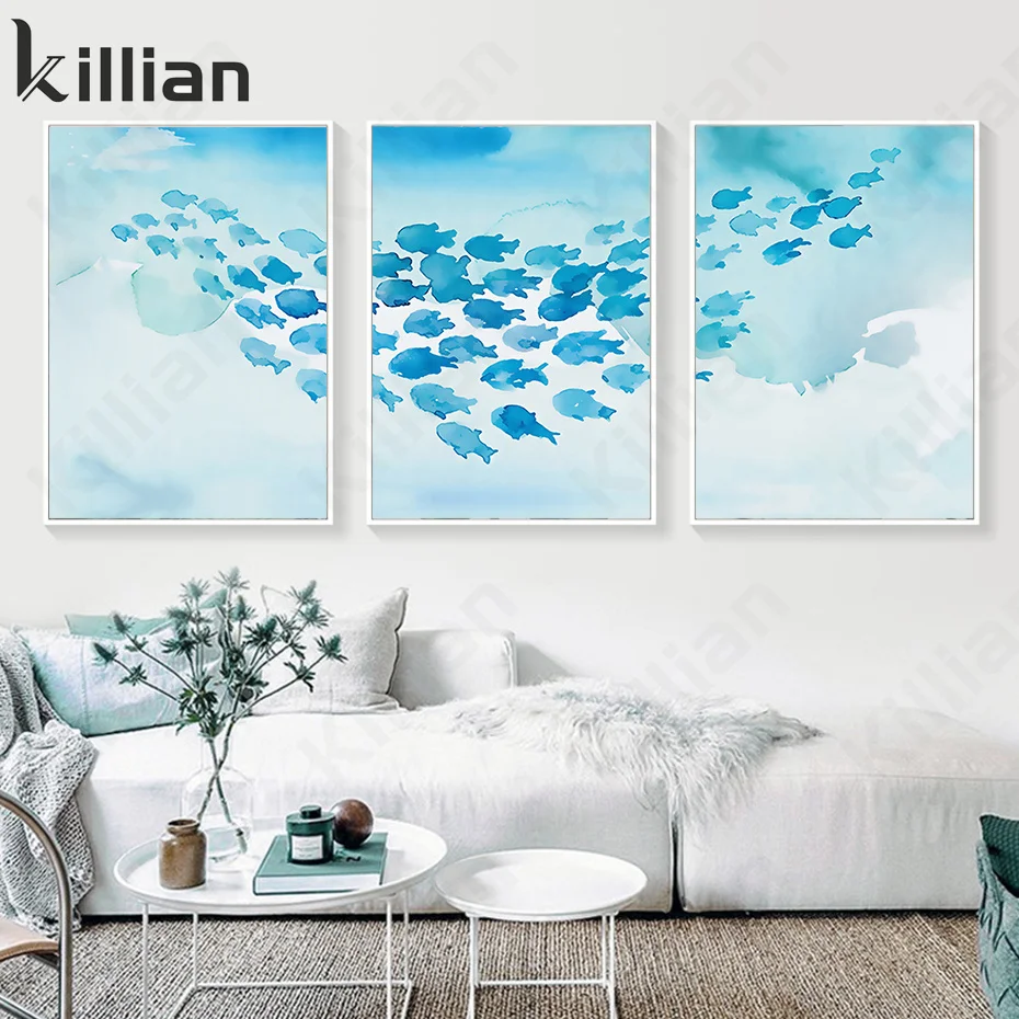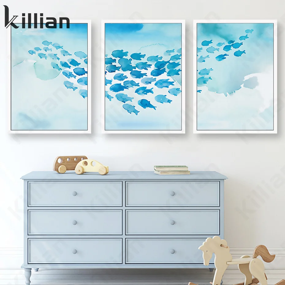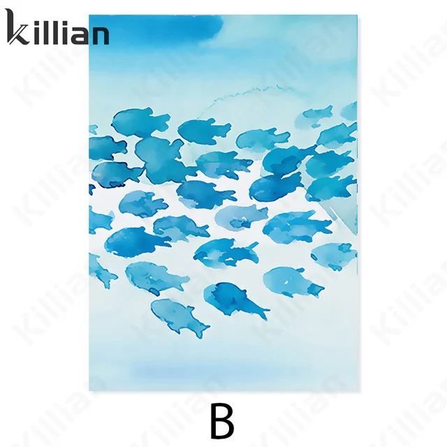Абстрактные животные кит Swarm синий художественный Принт плакат модная Гостиная Спальня домашний декор плакаты в эстетике