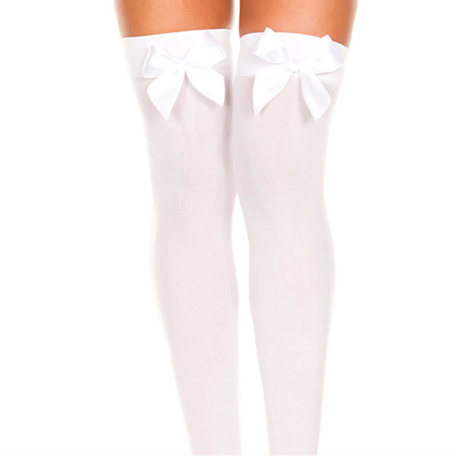 Женские атласные милые сексуальные длинные прозрачные чулки с бантиком