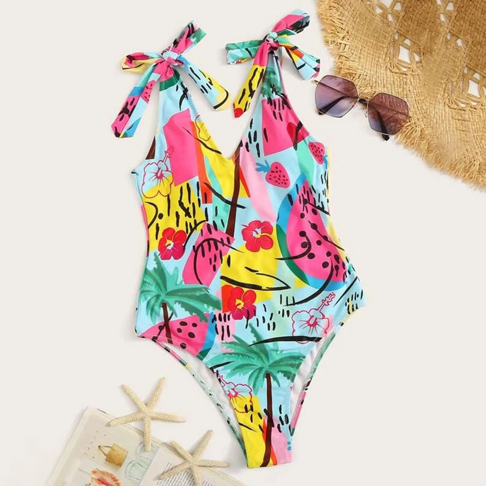Женский купальник бикини с принтом арбуза и глубоким V-образным вырезом