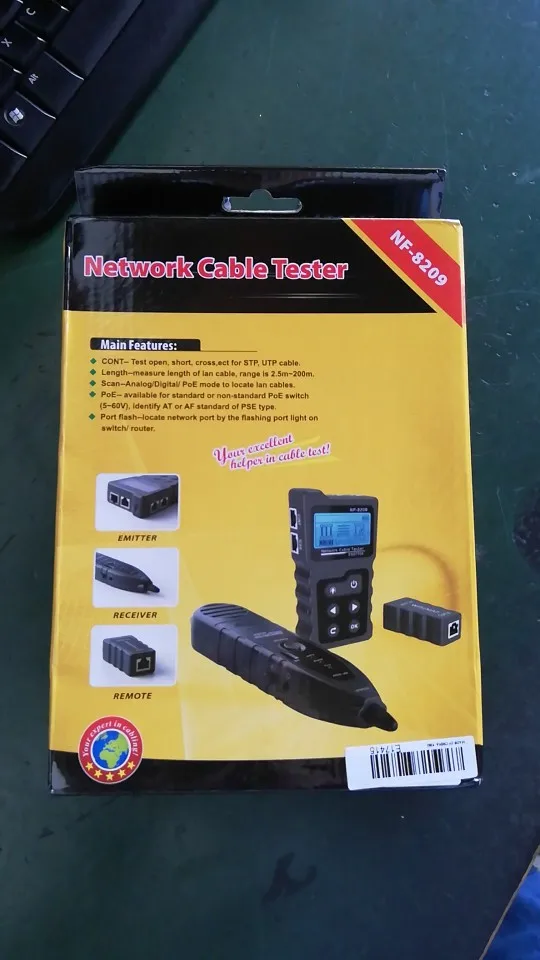 Тестер сетевого кабеля с ЖК-дисплеем NF-8209 дюйма, устройство для проверки PoE, встроенный тестер тока PoE с кабелем, тестер с подсветкой