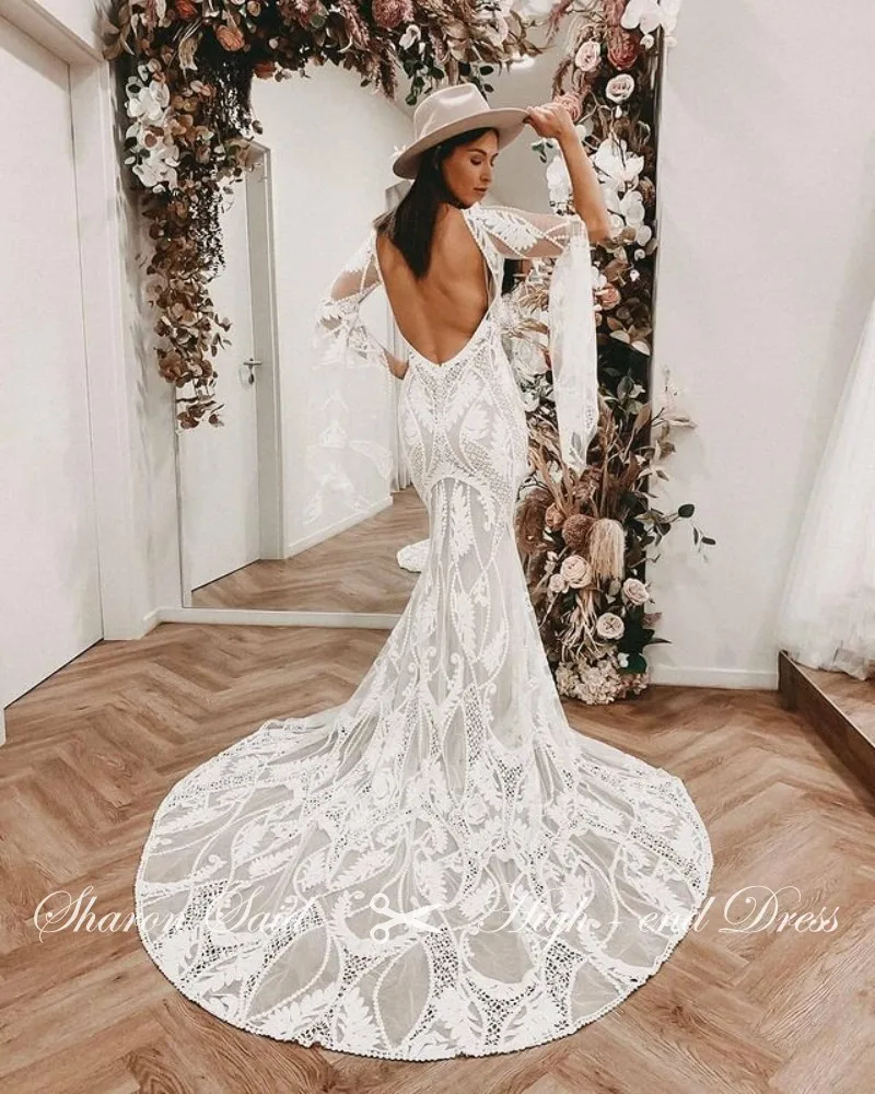 Элегантное платье-Русалка с длинным рукавом 2022 роскошные вышитые ...