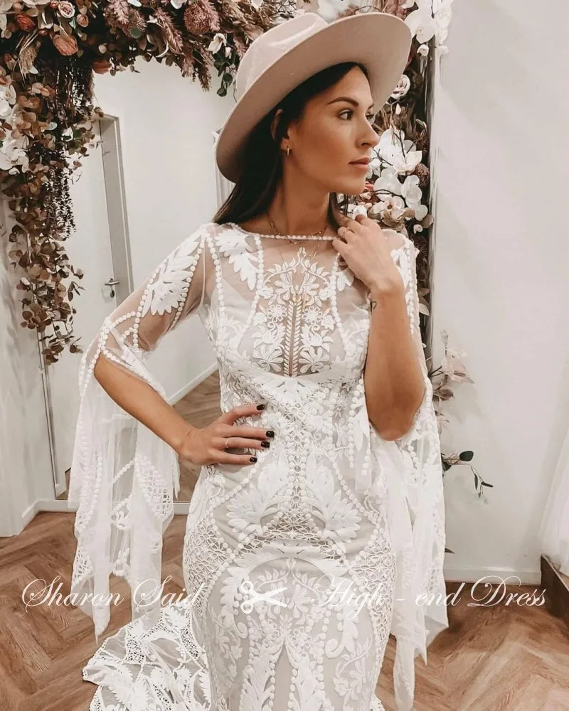 Роскошные иллюзионные нарукавники Свадебные платья с длинными рукав...