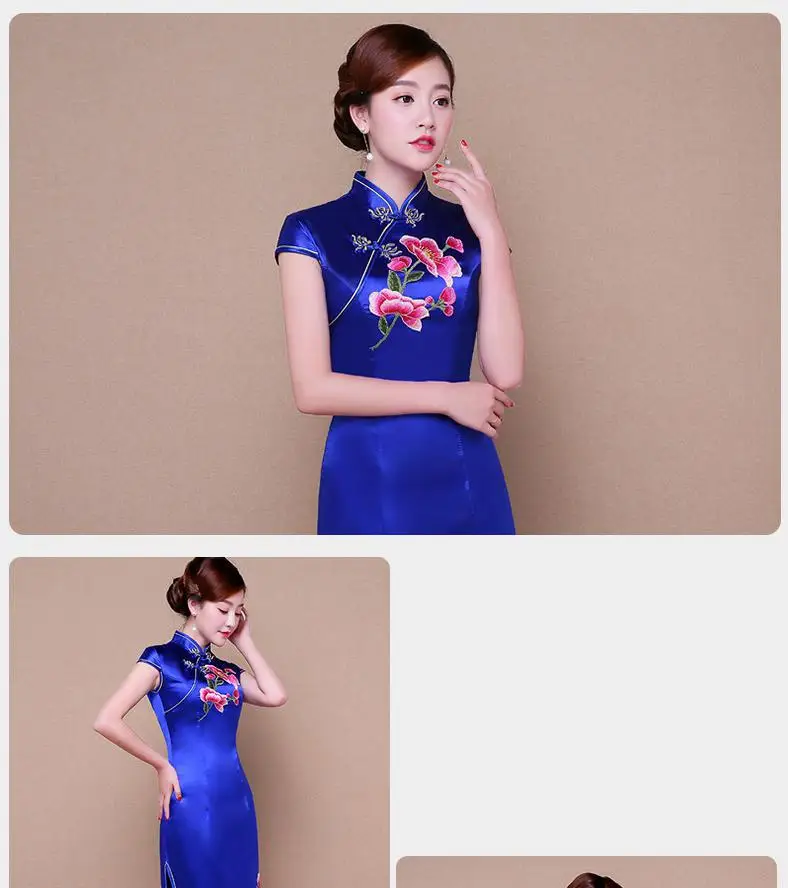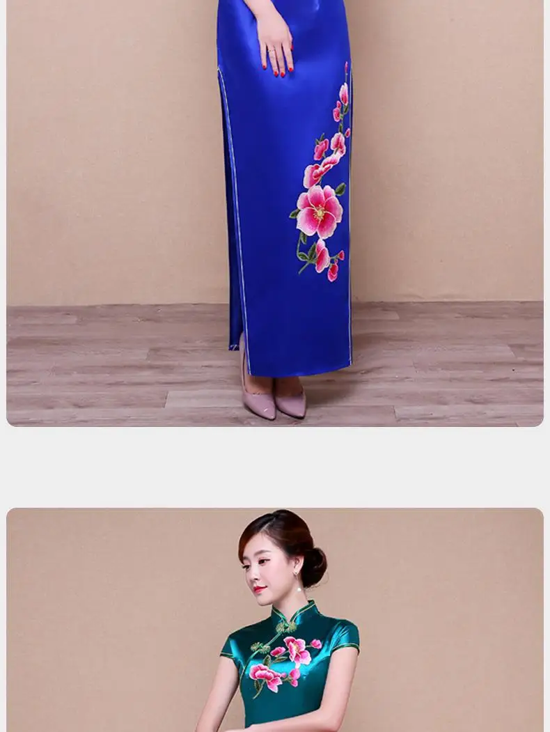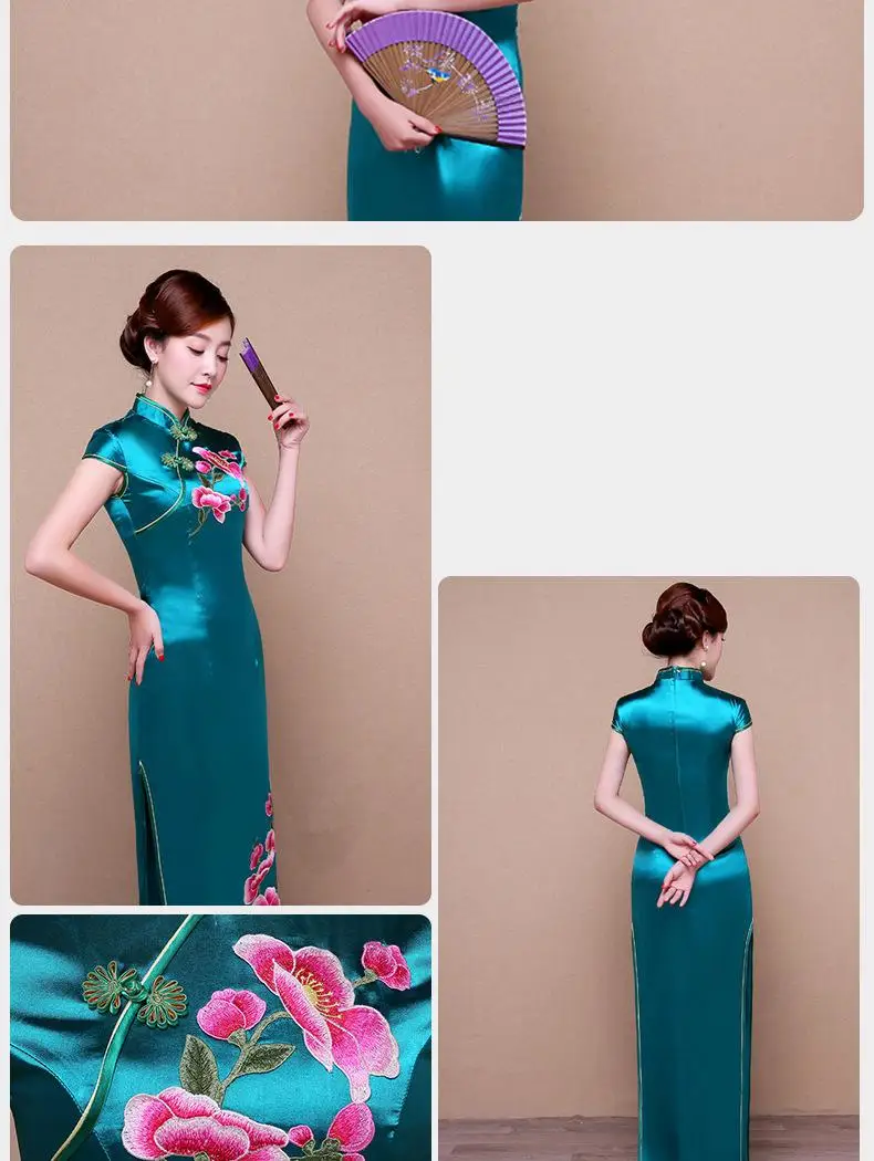 Зеленое изысканное цветочное искусственное платье Ципао женское сексуальное тонкое китайское официальное платье Элегантное Длинное Новинка Qipao