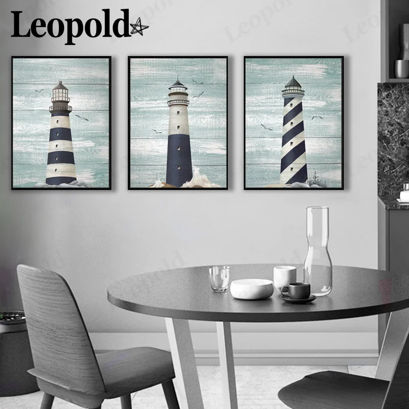 Nordic парусный спорт серии Холст плакат бело-синяя изображение маяка принт домашний декор Безрамная картинная