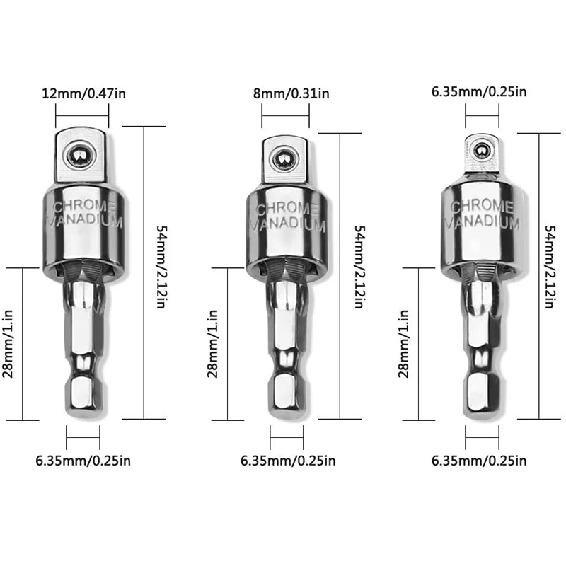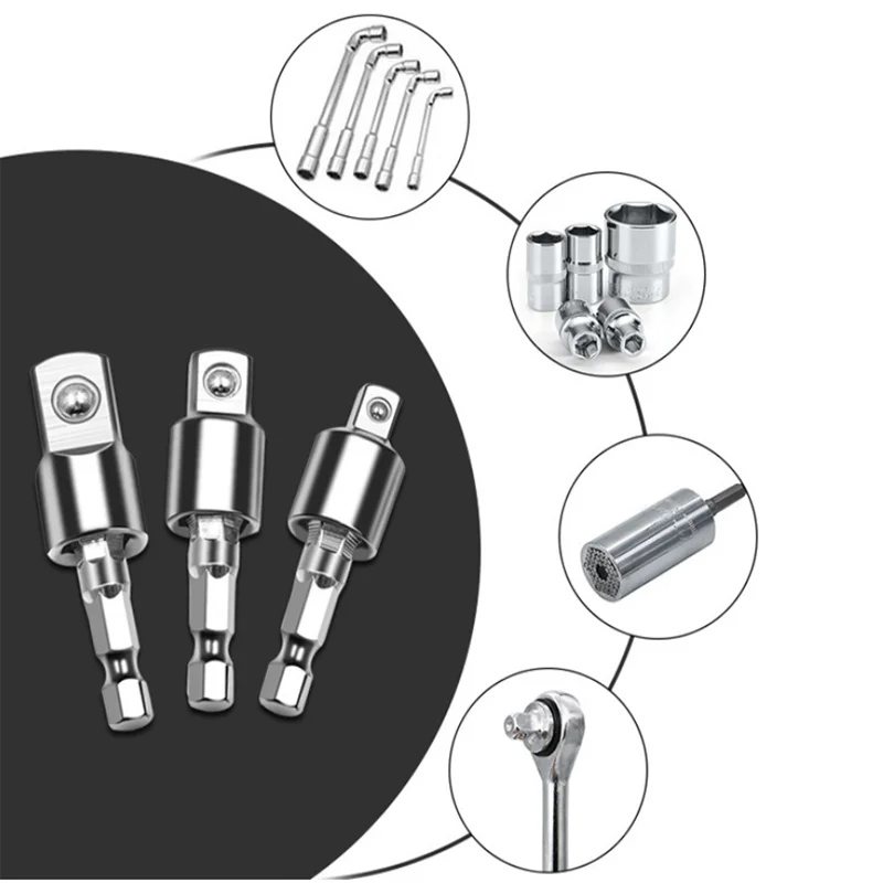 3 шт. Мощность Дрель адаптер гнезд комплект Ударная дрель адаптер 360 градусов Поворотный шестигранным хвостовиком Ударная дрель
