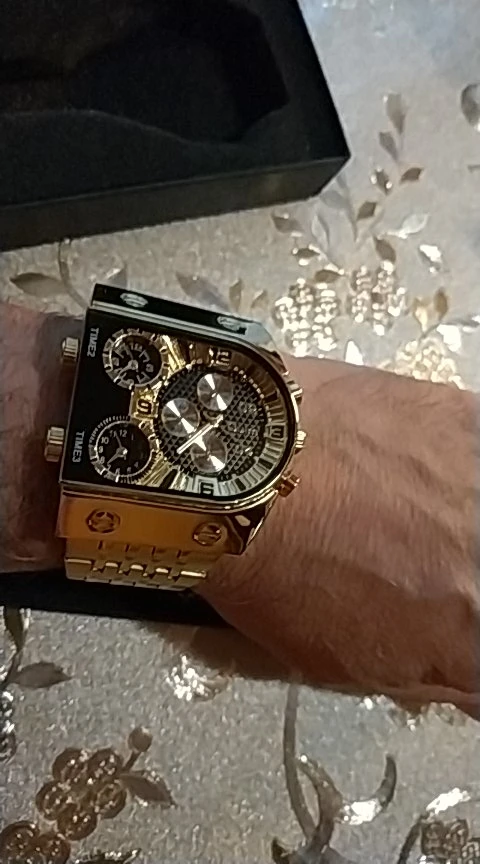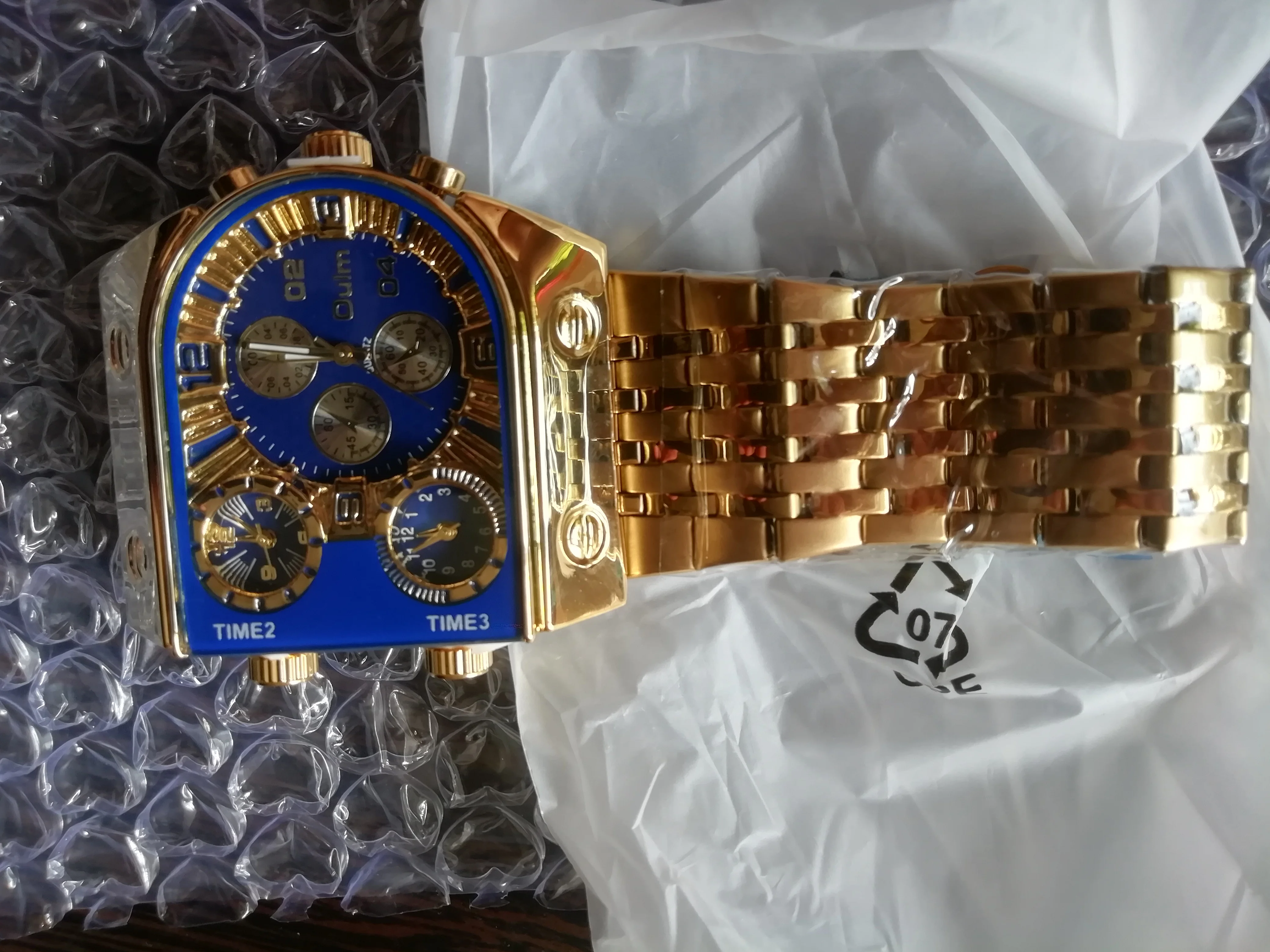 Часы Oulm с тремя часовыми поясами2021 новый стиль мужские большие наручные часыСветящийся указатель, больше и прохладнееВодонепроницаемые военные часы Golden 306L из стали