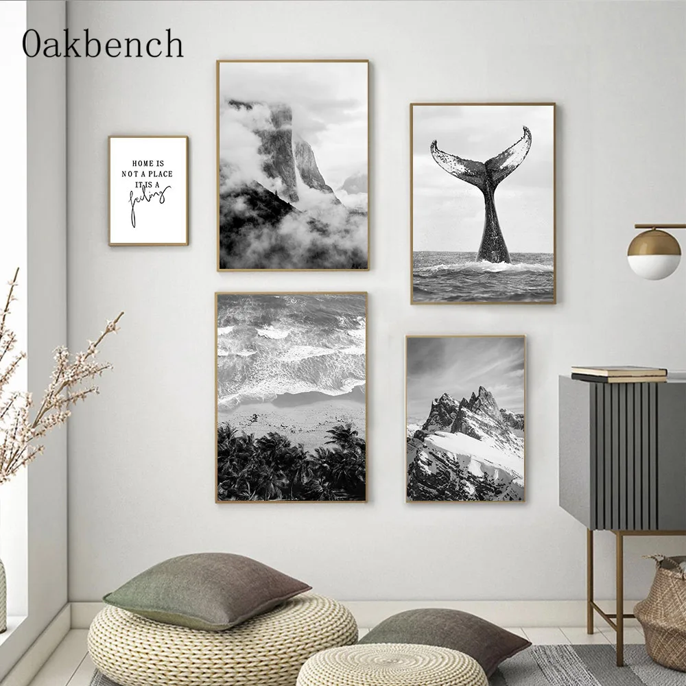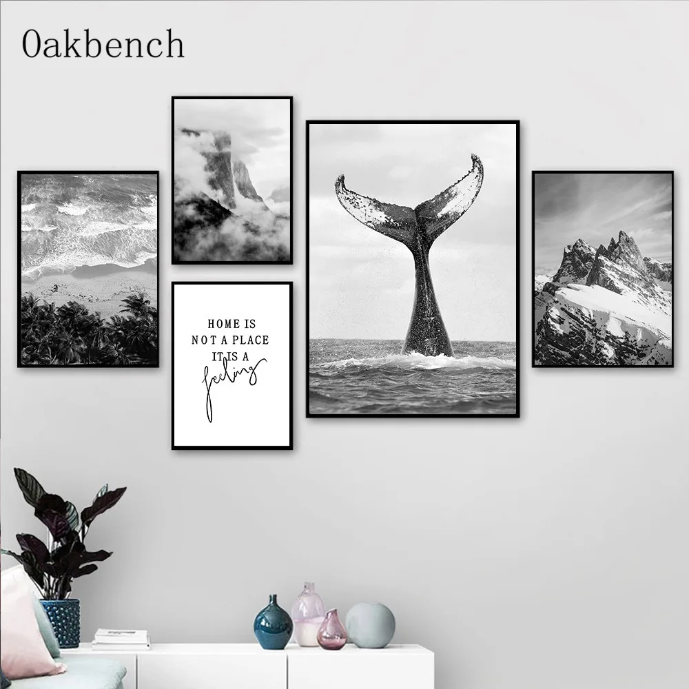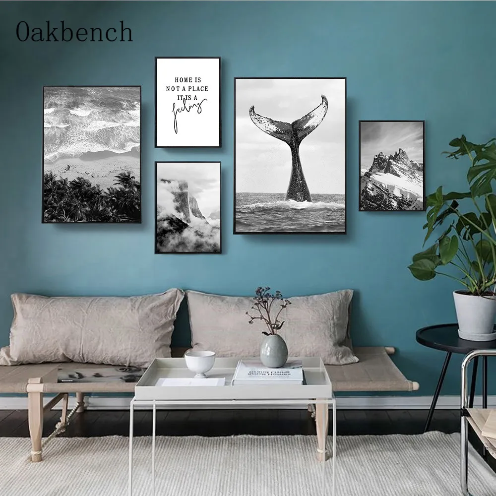 Черно-белые Плакаты горный Художественная печать морской плакат с изображением Кита пейзаж живопись холст Nordic настенные картины для Декор в гостиную
