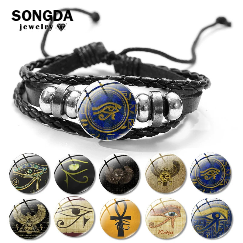 Браслет SONGDA из древней египетской кожи с глазом Гора богов для двоих влюбленных, амулет, символ, значки, браслет, ювелирные изделия в стиле панк, 2020