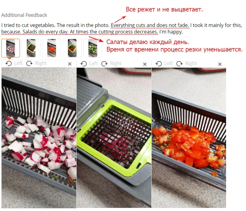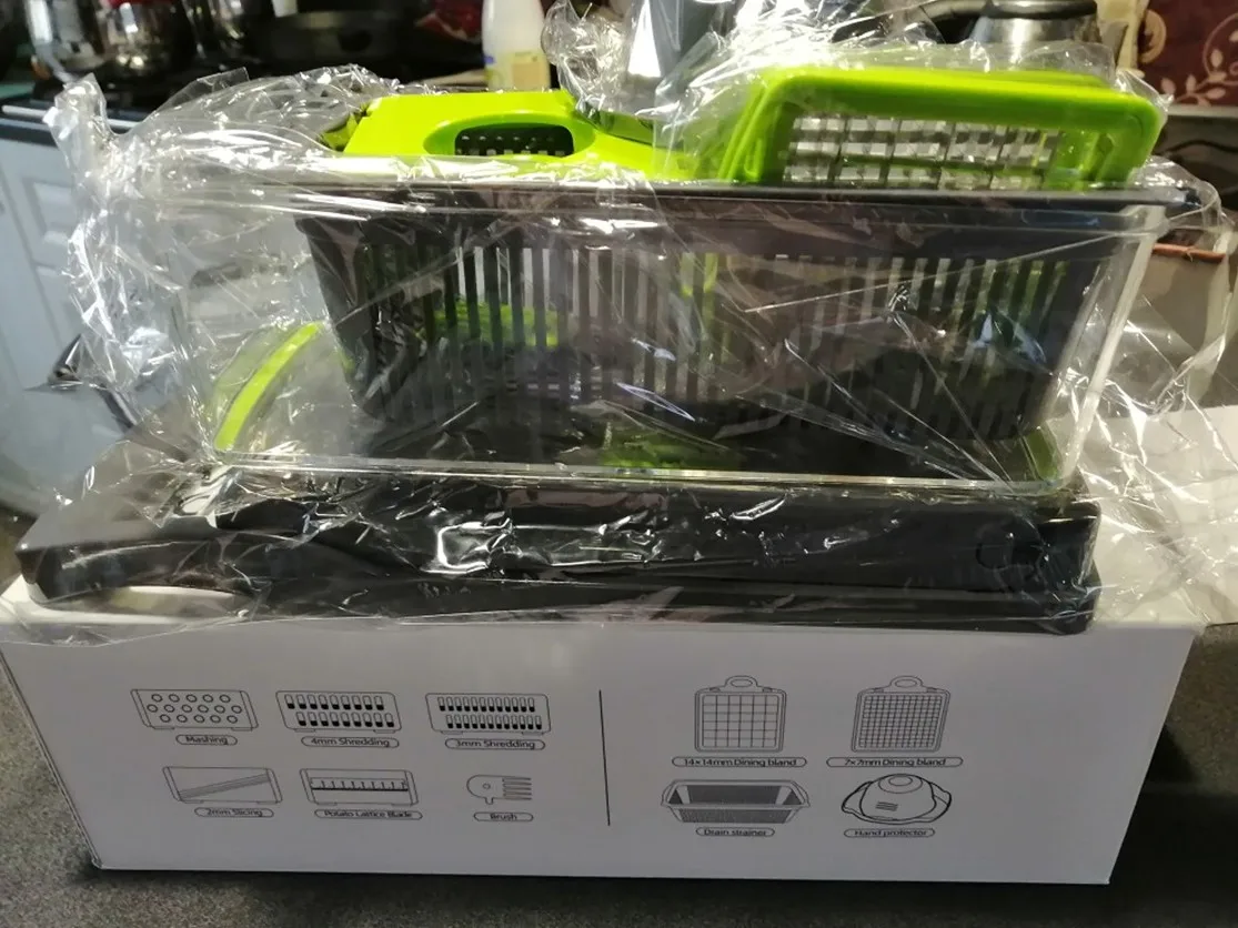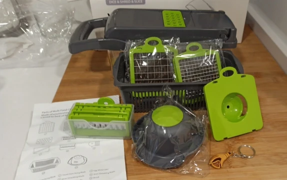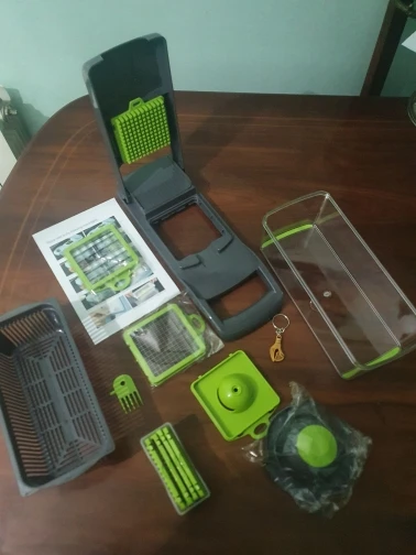 Овощерезке просто класс! Используется легко и просто. Насадки меняются без проблем, лезвия острые. Жалко, что верхняя крышка неплотно фиксируется на контейнере. При нарезке, крышу немного болтает. Этот недочёт производитель не предусмотрел. Пришла быстро, за неделю. Сделана качественно, без брака. Заказываю уже второй раз, в подарок маме. Сама уже пользуюсь такой, очень нравится. Продавец общительный, написал первый. В коробку положил подарок, брелок. Спасибо продавцу, приятно))