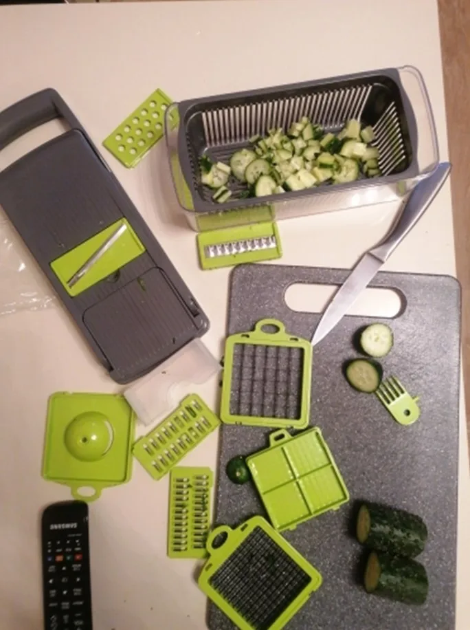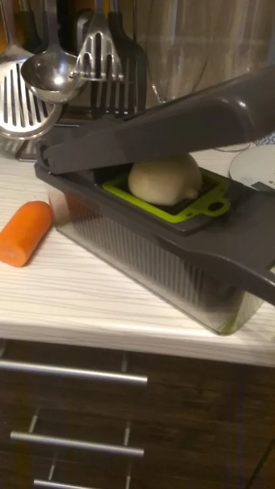 отличная терка! лук 5 головок за 5 секунд порезала, будьте осторожны, очень острые грани!
