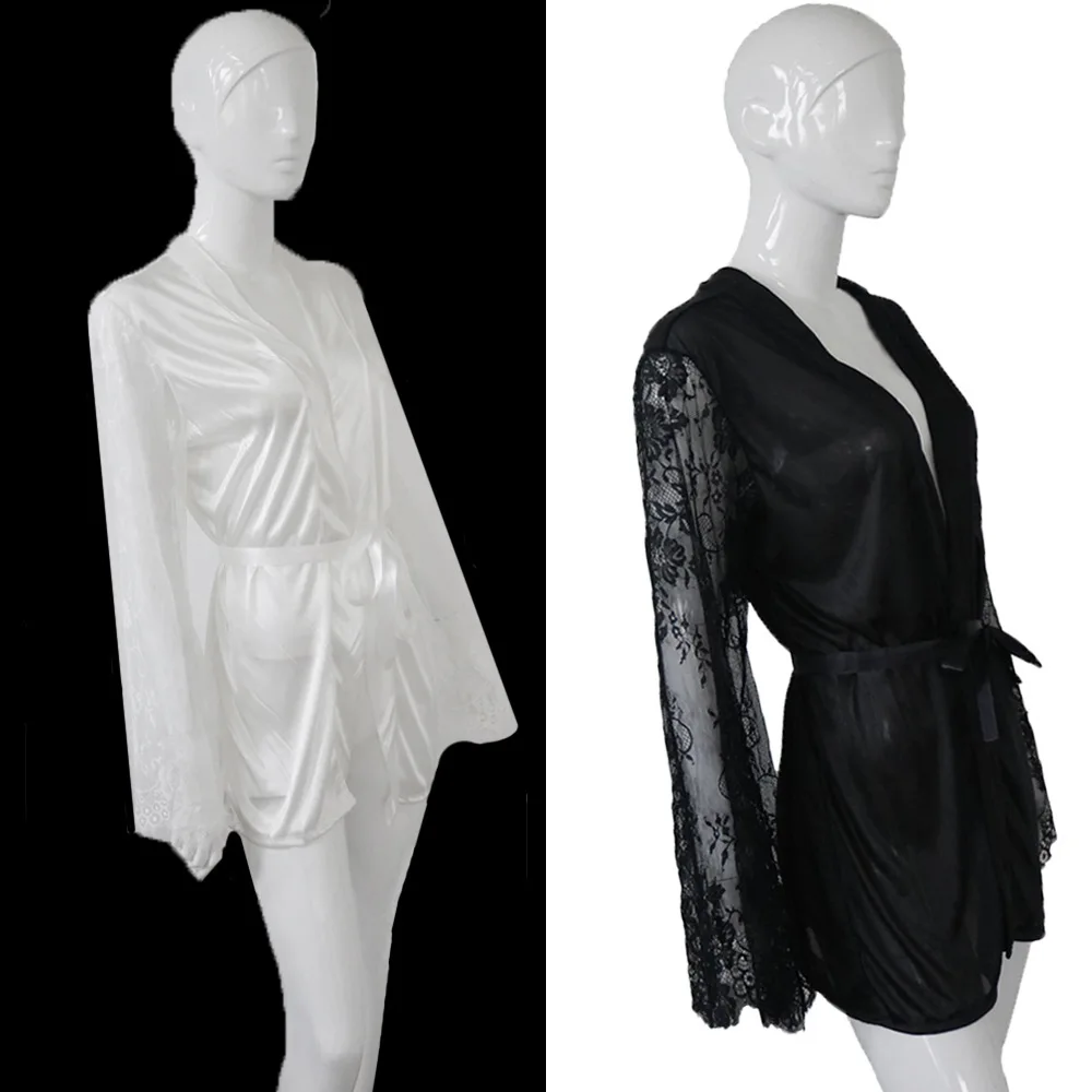 Женский прозрачный халат-кимоно, кружевная ночная рубашка с цветочным принтом