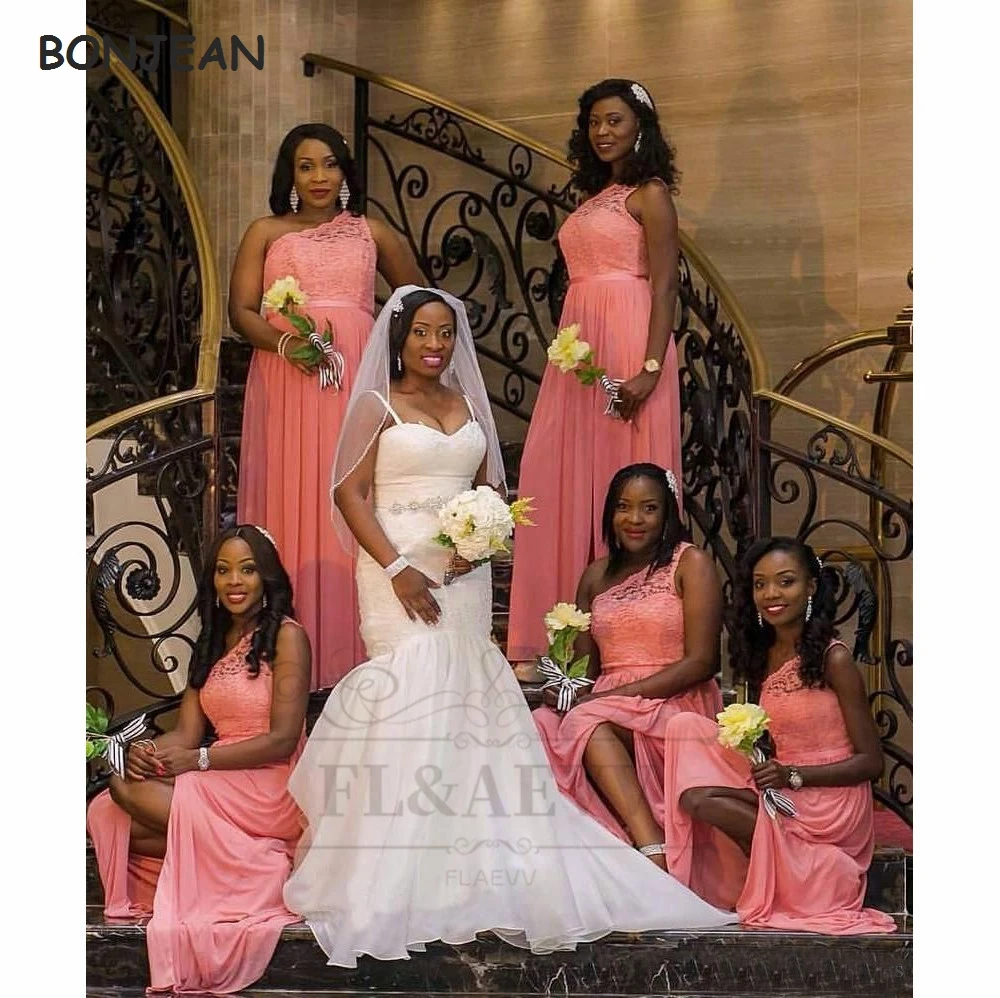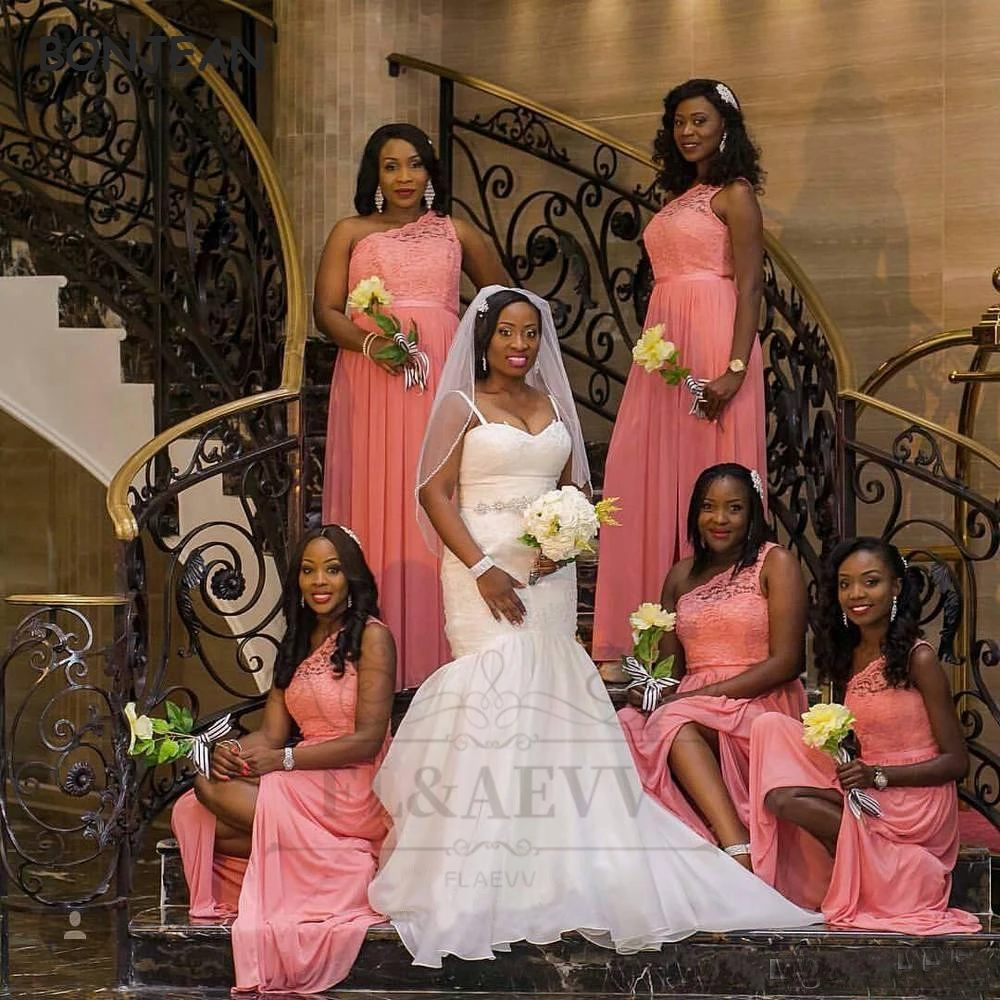 2021 коралловые черные платья для подружки невесты на одно плечо, д...